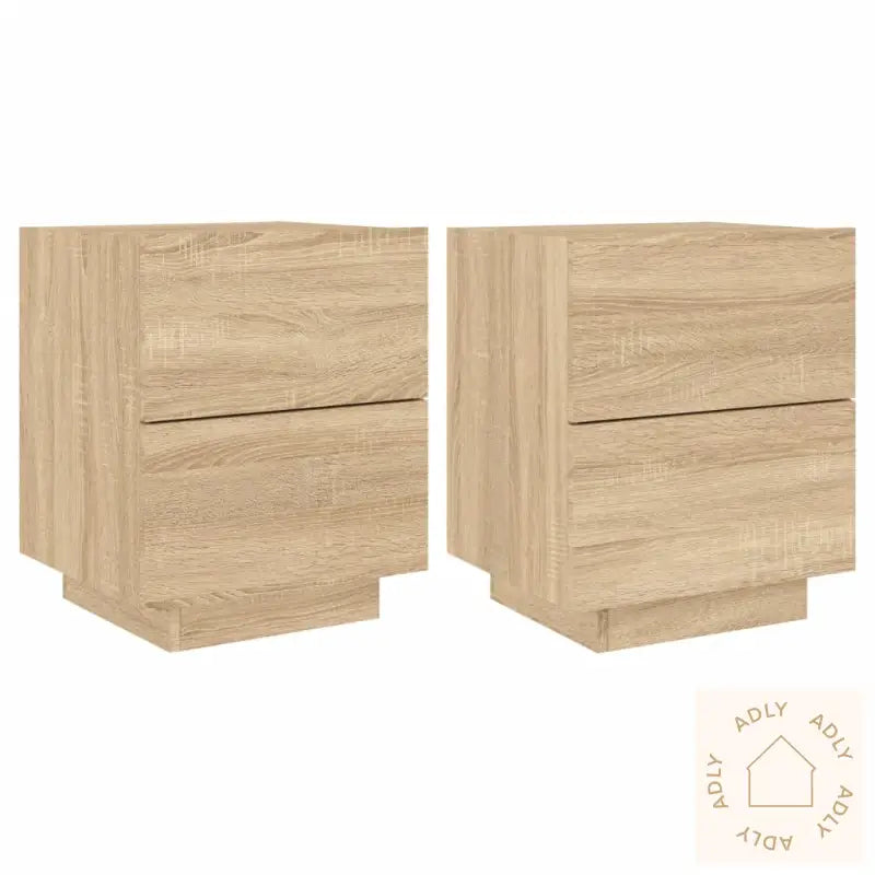 Slitesterkt materiale: Nattbordene er laget av konstruert treverk i høy kvalitet, noe som gir en glatt overflate og lang levetid. Materialet har egenskaper som styrke og stabilitet samtidig som det motstår fuktighet, så du kan stole på at møbelet holder seg pent over tid.RGB LED-lys: Med innebygde RGB LED-lys får du fleksibel stemningsbelysning som kan tilpasses dine ønsker. Du kan enkelt justere fargene via ulike menyer, og til og med aktivere automatisk fargeveksling for ekstra stemning. Disse LED-lysene gir nattbordet et eksklusivt og trendy preg som gjør soverommet unikt.Rikelig med lagringsplass: Hvert sideskap er utstyrt med 2 romslige skuffer, der mål på både ytre og indre skuff (mål skuff) gir deg tydelig oversikt. Oppbevar bøker, magasiner, fjernkontroller eller andre småting ryddig og lett tilgjengelig uten rot.Stabil bordplate: Øvre del av nattbordet gir en stødig flate der du kan plassere pynt, bilder, en lampe eller grønne planter og løfte helheten i rommet, samtidig som den tåler daglig bruk godt.Godt å vite: