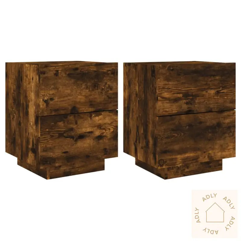 For sikker bruk, må du benytte de veggfestene som følger med for å unngå at møblet velter. Farge: røkt eikMateriale: konstruert treMål: 45 x 40 x 55 cm (B x D x H)Ytre mål skuff: 45 x 24 cm (L x B)Indre mål skuff: 39,5 x 35 x 7 cm (B x D x H)Montering kreves: jaLeveransen inneholder:2 x nattbordLegal Documents: