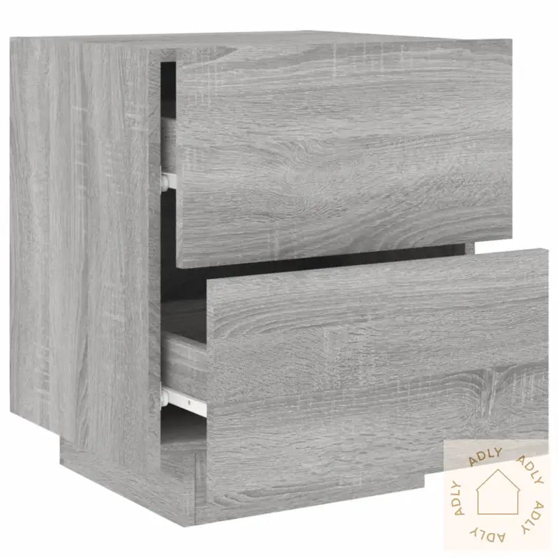 For sikkerhetens skyld bør medfølgende festemidler til vegg brukes for å forhindre at nattbordene velter – dette er spesielt viktig i hjem med barn.Farge: grå sonomaMateriale: konstruert treMål: 45 x 40 x 55 cm (B x D x H)Ytre mål skuff: 45 x 24 cm (L x B)Indre mål skuff: 39,5 x 35 x 7 cm (B x D x H)Montering kreves: jaLeveransen inneholder:2 x nattbordLegal Documents: