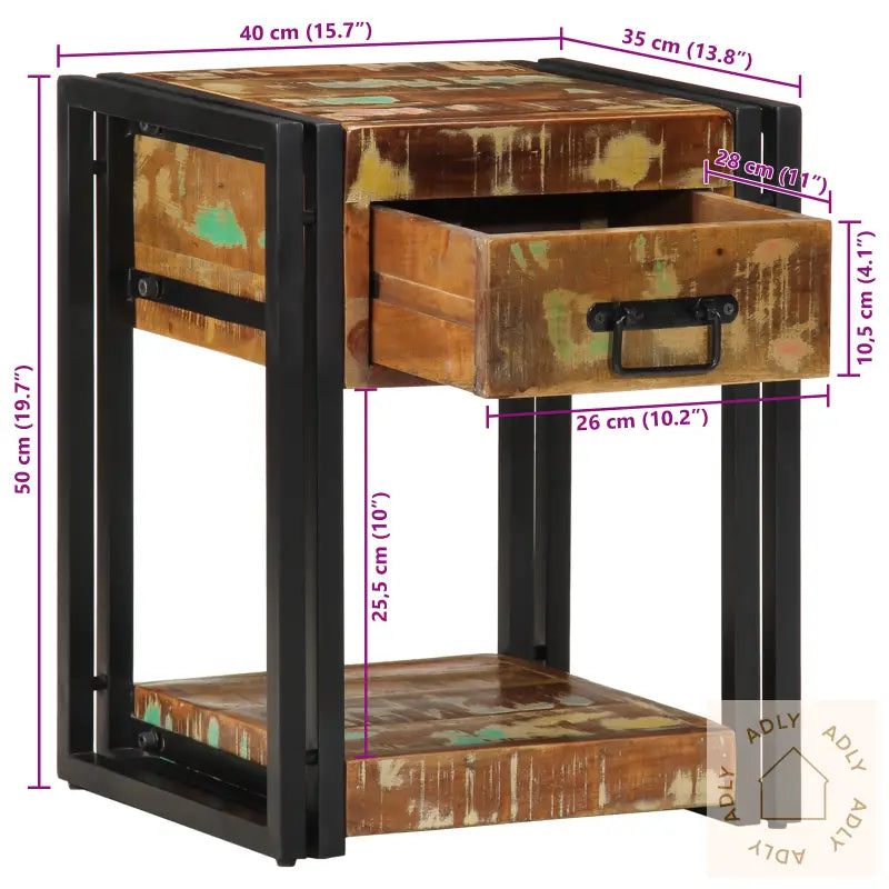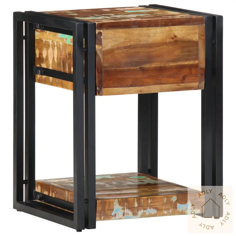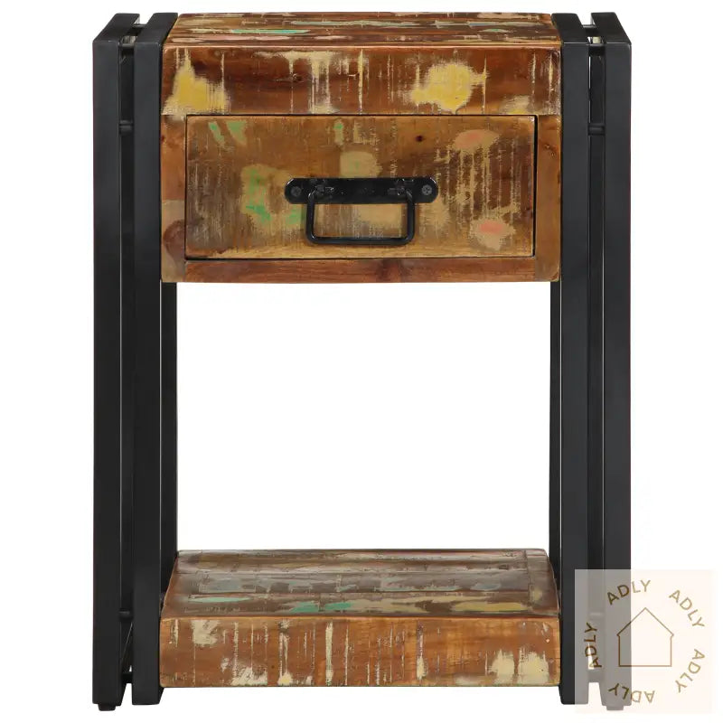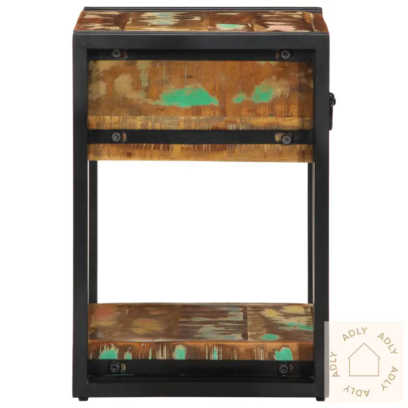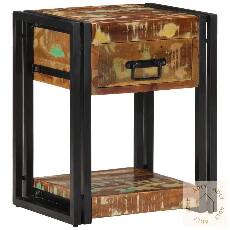 Dette solide nattbordet i gjenvunnet tre kombinerer praktisk funksjon med rustikk sjarm, noe som gir soverommet ditt et friskt og karakterfullt uttrykk. Bordet er laget av solid gjenvunnet tre og har en vakker, flerfarget finish som gjør hvert enkelt nattbord unikt. Det perfekte stedet for kveldsessensialer – alt fra favorittboka til en dekorativ lampe får enkelt plass.