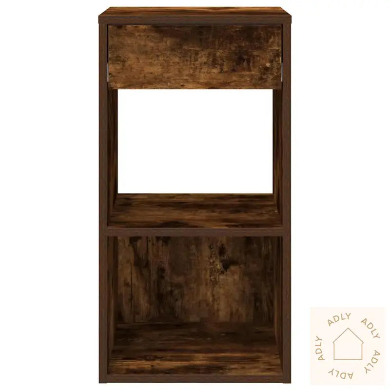 Stabilt og slitesterkt materiale: Nattbordet er laget i konstruert tre, kjent for å være robust og holdbart. Den jevne overflaten gjør at det tåler daglig bruk, motstår fuktighet, sprekker og vridning – ideelt for alle som ønsker kvalitet og lang levetid på møblene sine.Rikelig med oppbevaring: Du får en skuff og to åpne oppbevaringsrom, noe som gjør det enkelt å holde soverommet organisert. Perfekt for å gjemme unna bøker, ladere, magasiner og småting du vil ha lett tilgjengelig, slik at rommet ser ryddig og innbydende ut.Praktisk bruk: Bordet har en høyde som er nøye tilpasset vanlig sengehøyde, så du slipper å strekke deg. Skuffen er utstyrt med et solid og brukervennlig håndtak, slik at du får rask tilgang til det du trenger, selv midt på natten.Enkelt å vedlikeholde: Med sin glatte overflate er nattbordet lett å vaske over med en fuktig klut. Dette krever minimalt med vedlikehold, og sørger for at møblet beholder sitt fine utseende år etter år.Advarsel: