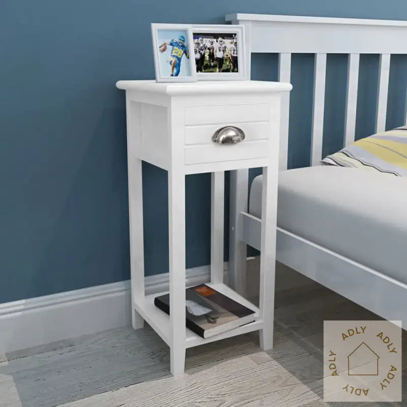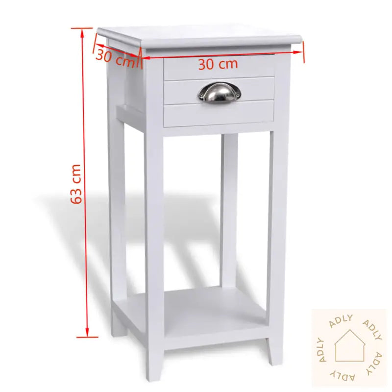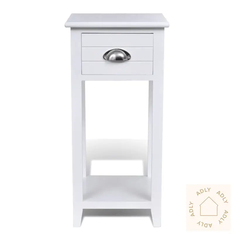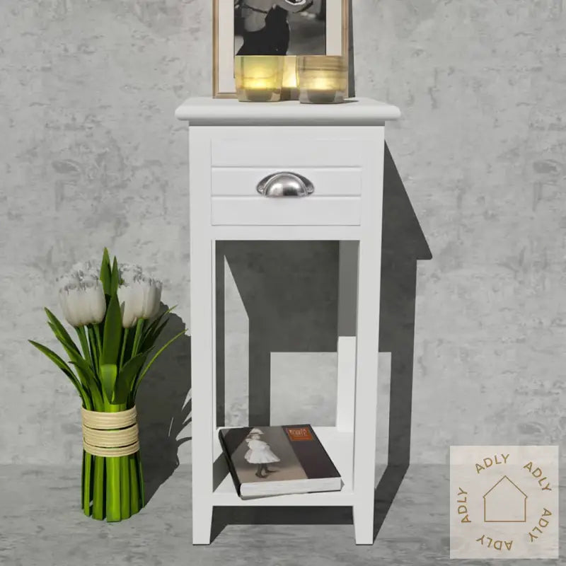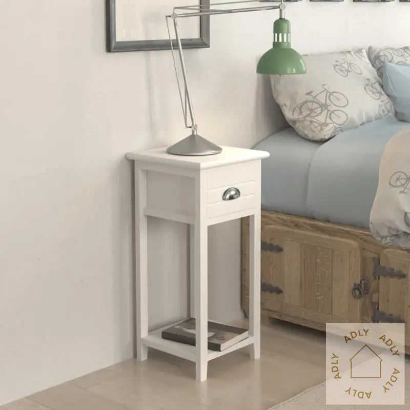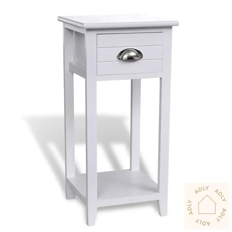 Dette nattbordet har et tidløst, elegant design som passer perfekt som både nattbord og telefonstativ. Med en praktisk skuff og åpen hylle får du god plass til å holde småting som bøker, briller eller klokke organisert og lett tilgjengelig ved sengen eller i andre rom der du trenger funksjonelle møbler til hjemmet.