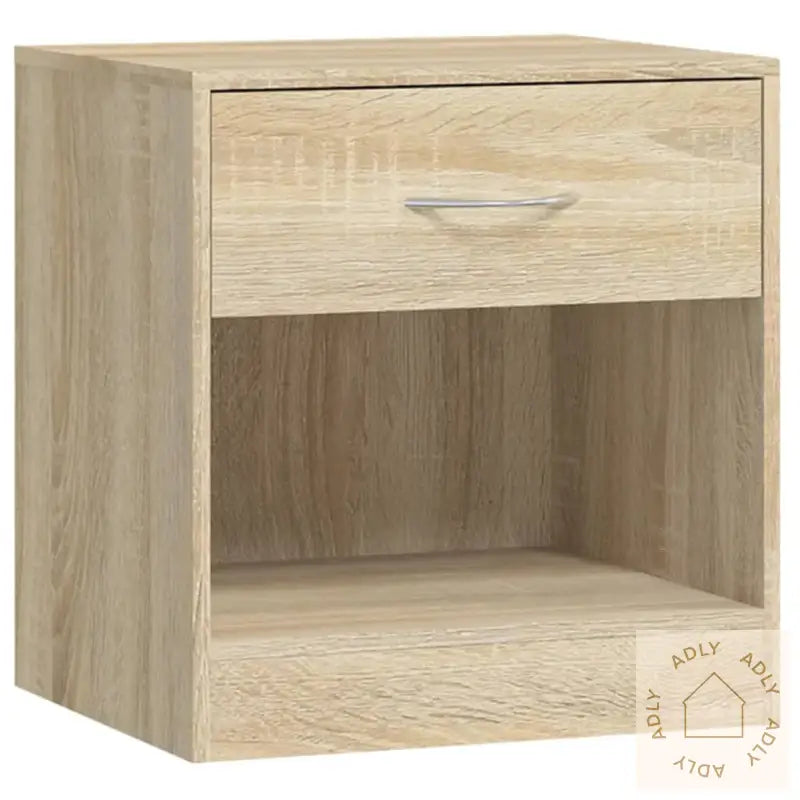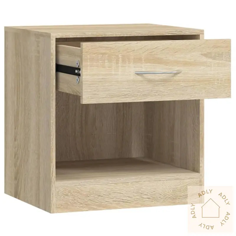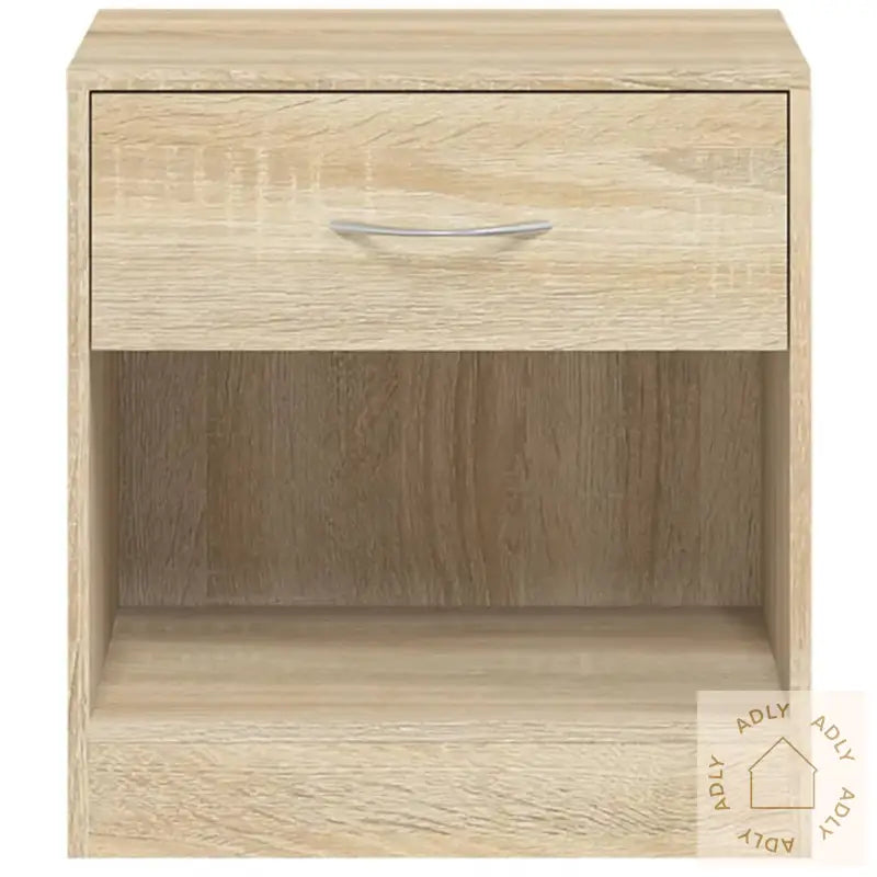 Farge: eikMaterialer: konstruert tre + MDFSamlet mål: 36,5 x 30,5 x 38 cm (L x B x H)Mål skuff: 33 x 26 x 12 cm (B x D x H)Hvert nattbord har én skuff som åpnes lett med håndtakEnkel monteringLeveringen inkluderer 2 nattbord