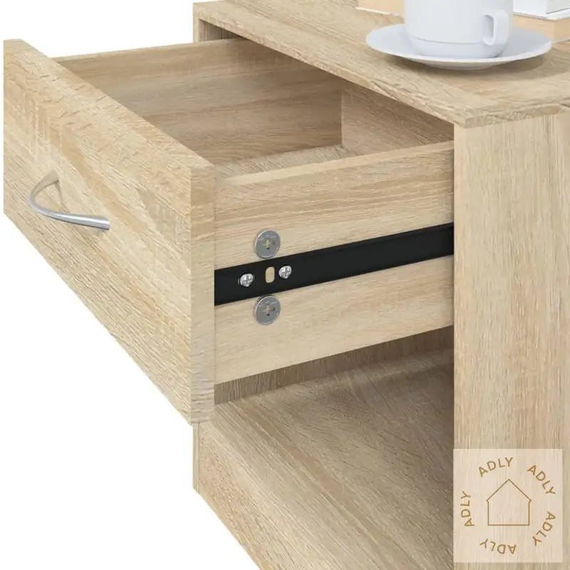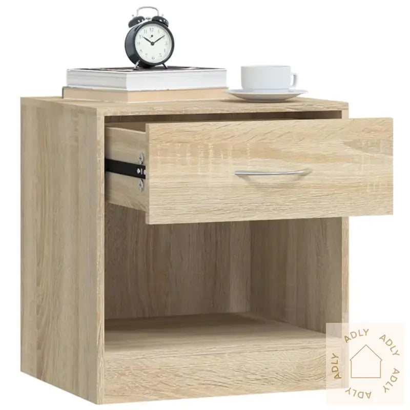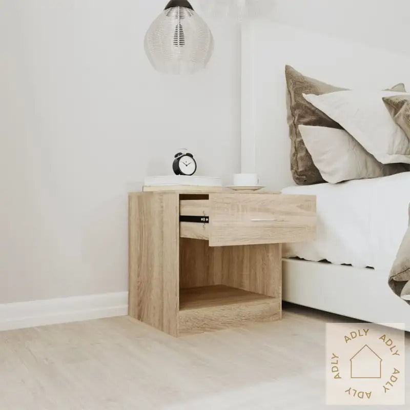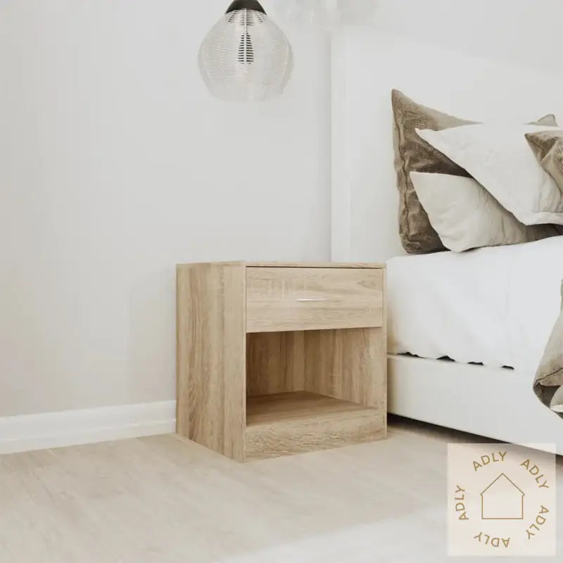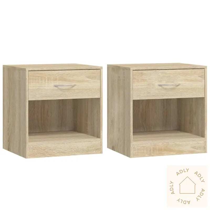 Nattbordene er produsert i høykvalitets konstruert tre og MDF, noe som gjør dem robuste, slitesterke og svært enkle å rengjøre – ideelt for deg som ønsker praktiske og pene møbler til hjemmet. Det tidløse eikefarget gir et klassisk uttrykk som matcher de fleste interiørstiler og kombinerer enkelt med andre hagemøbler eller møbler i innendørsmiljøet.
