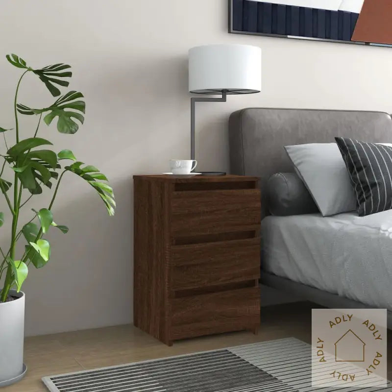 God lagringsplass: Nattbordet har tre romslige skuffer der du enkelt kan organisere alt fra bøker til småting, slik at soverommet ditt holdes ryddig og oversiktlig.Flerfunksjonelt skap: Den solide bordplaten tåler daglig bruk og passer perfekt til pyntegjenstander, bilder eller planter. Passer ikke bare som nattbord, det kan også brukes som sideskap eller endebord rundt om i hjemmet – ideelt for deg som vil ha fleksible møbler til hjemmet.Materiale som er lett å rengjøre: Produsert i konstruert tre, noe som gir en glatt og slitesterk overflate med god motstand mot fuktighet. Det gjør at dette nattbordet er enkelt å vedlikeholde og holder seg pent lenge.ADVARSEL:
