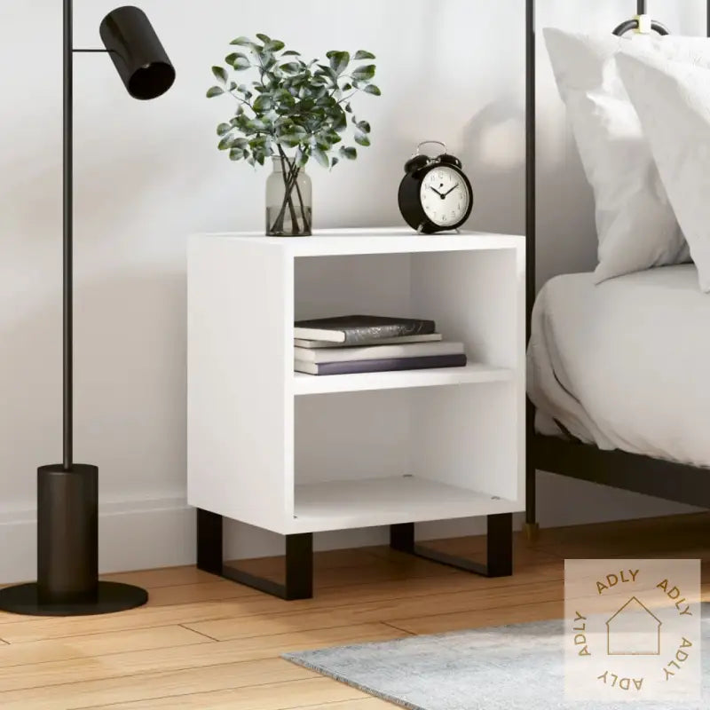 Slitesterkt materiale: Nattbordet er laget av konstruert treverk, som kjennetegnes av kvalitet, styrke og en glatt overflate. Dette gir solid stabilitet, lang levetid og motstand mot fukt, noe som gjør at du får et produkt som holder seg pent lenge. Materialet er også lett å rengjøre med en fuktig klut, noe som gjør vedlikeholdet svært enkelt – perfekt for travle hverdager.Rikelig med oppbevaringsplass: Med to romslige oppbevaringsrom får du god plass til å holde småting som bøker, magasiner, fjernkontroller eller ladekabler organisert og lett tilgjengelig. Slik kan du enkelt holde nattbordet ryddig og ha det du trenger nær sengen.Stabil topp: Den robuste toppen gir deg plass til dekorative elementer som bilder, potteplanter eller en liten lampe – alt for å skape en hyggelig og personlig atmosfære i rommet, og samtidig utnytte plassen optimalt.Advarsel: