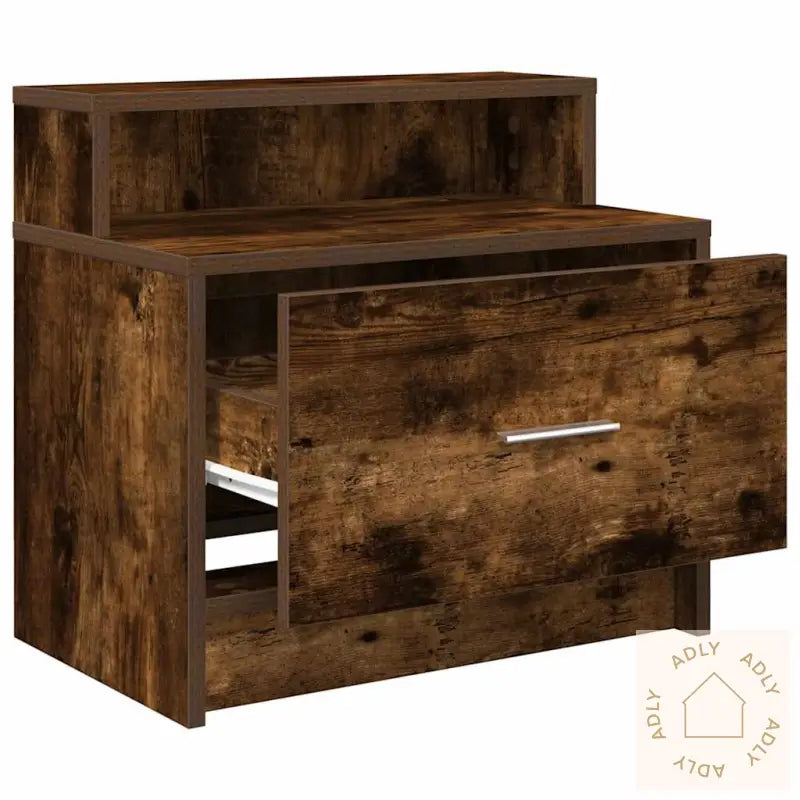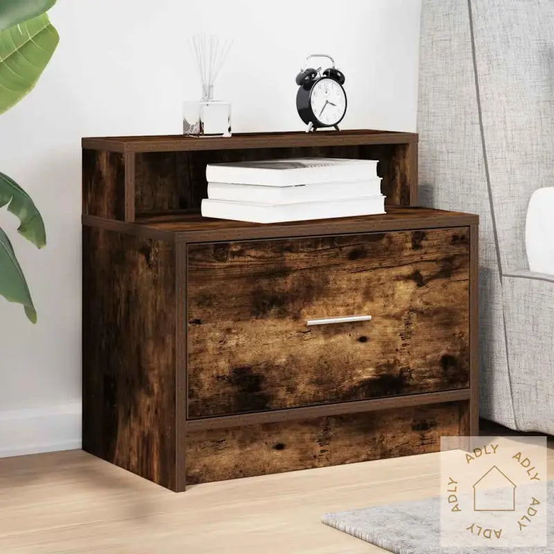 Stabilt og slitesterkt materiale: Skuppet er laget av konstruert tre av høy kvalitet, kjent for å være både robust og stabilt. Materialet motstår fuktighet, vridning og sprekker, noe som gjør det til et varig valg når du ser etter solide møbler eller utendørsmøbler for ulike behov i hjemmet.Rikelig med oppbevaring: Skapet har en stor skuff og et romslig åpent oppbevaringsrom. Dette gir deg all plassen du trenger til bøker, magasiner, briller eller andre viktige ting som bør være lett tilgjengelig – perfekt for å holde soverommet organisert og oversiktlig.Praktisk bruk: Den ideelle høyden gjør at du enkelt rekker over fra sengen, og de brukervennlige håndtakene på skuffene sørger for enkel og jevn åpning. Skapet er designet for å gjøre hverdagen litt enklere, enten du bruker det ved siden av sengen eller andre steder i hjemmet der praktiske og pene møbler er et must.Enkelt å vedlikeholde: Med den glatte, fuktresistente overflaten er skapet enkelt å holde rent med en lett fuktig klut og krever minimalt med vedlikehold.Advarsel: