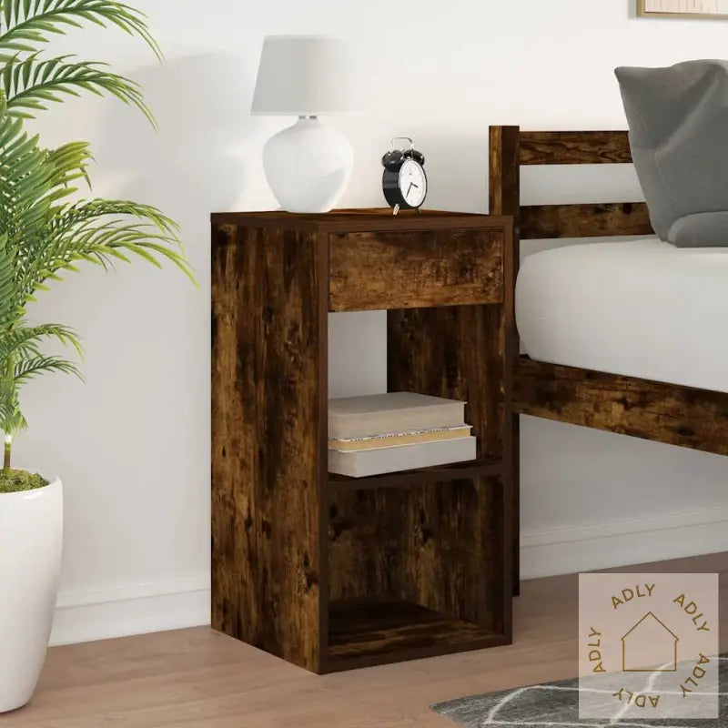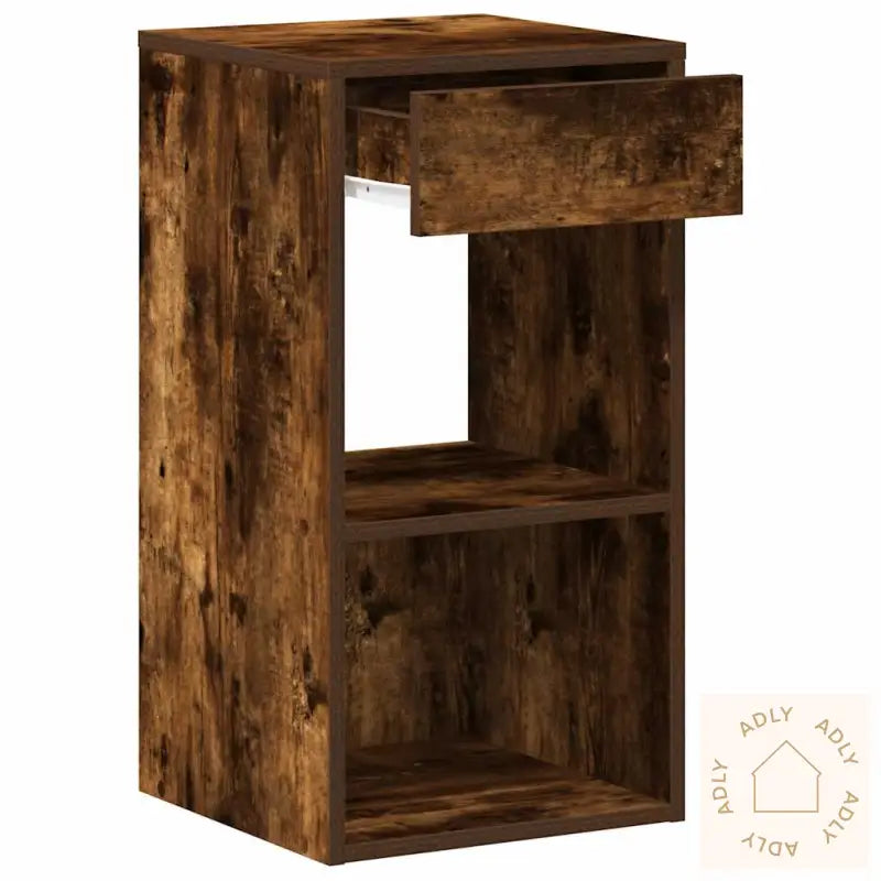 Stabilt og slitesterkt materiale: Laget av konstruert tre, som er kjent for sin robuste, stabile kvalitet og jevne overflate. Materialet tåler fuktighet og er motstandsdyktig mot vridning og sprekker, noe som gjør det til et solid valg både for innemøbler og i kombinasjon med andre møbler til hjemmet.God oppbevaringsplass: Skapet har én romslig skuff og to åpne hyller. Her kan du enkelt organisere bøker, magasiner, ladere eller andre småting, slik at soverommet ditt holder seg ryddig og oversiktlig. Dette gir deg god plass til å oppbevare personlige eiendeler akkurat der du trenger dem mest.Praktiske detaljer: Den perfekte høyden sørger for enkel tilgang til småting direkte fra senga, og med håndtak på skuffene åpnes de lett og smidig. Nattbordet har gjennomtenkt design som sikrer funksjonalitet samtidig som det matcher annet interiør, enten du velger det sammen med hagemøbler, utendørsmøbler eller resten av møblene hjemme.Enkel rengjøring: Den glatte overflaten gjør det kjapt å tørke av støv og søl med en lett fuktet klut, så du slipper å bruke mye tid på vedlikehold.Advarsel: