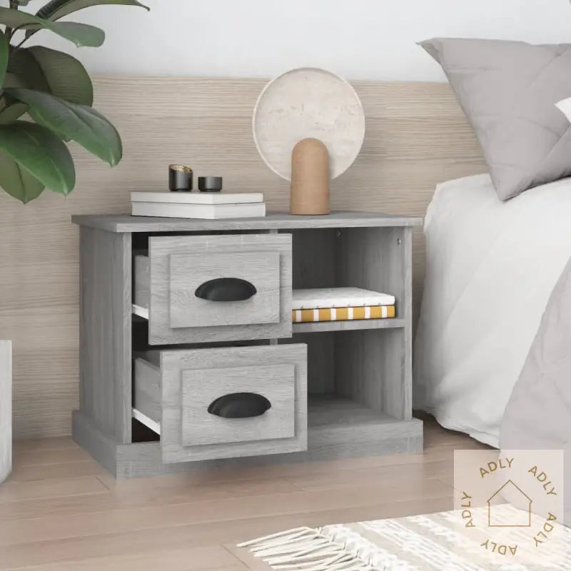 For enkel montering leveres produktet med en brukervennlig manual. Du kan dermed lett sette sammen møbelet selv, noe som sparer både tid og penger.Farge: grå sonomaMateriale: konstruert treMål: 60 x 35,5 x 45 cm (B x D x H)Oppdag dette praktiske nattbordet som gir deg både funksjon og stil, enten du er ute etter nye møbler til hjemmet eller vil oppdatere interiøret med moderne detaljer. Perfekt innslag sammen med andre møbler for å skape et helhetlig uttrykk!