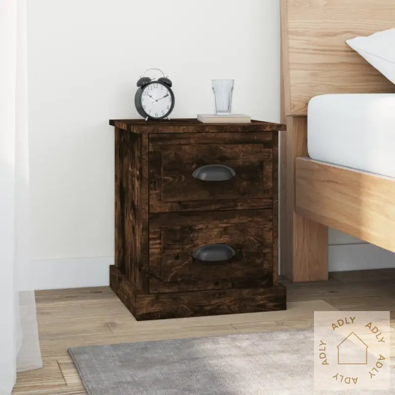 - Rikelig med oppbevaringsplass: Den romslige bordplaten gir god plass til klokke, bøker eller en kopp kaffe. De to praktiske skuffene gir deg enkelt tilgang til småting, som fjernkontroller eller briller, slik at du alltid har det du trenger rett ved sengen.