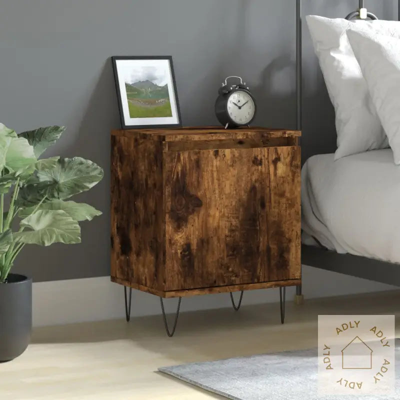 Slitesterkt materiale: Dette nattbordet er laget av konstruert treverk med en røkt eik-finish som gir en moderne og varm følelse. Overflaten er glatt og enkel å tørke over med en fuktig klut. De robuste materialene sørger for lang levetid og god motstand mot både daglig slitasje og fuktighet – perfekt for norske hjem og møbler.God oppbevaringsplass: Den smarte innredningen med ett rom gir deg plass til å organisere alt du vil ha innen rekkevidde, som magasiner, bøker eller ting som ellers ville skapt rot på soverommet. Perfekt om du vil ha fjernkontroller og småelektronikk lett tilgjengelig, men ute av syne.Stødig topp: Toppen er solid og stabil, slik at du trygt kan stille ut favorittbilder, bokhyller og stående hyller med dekor, eller til og med en liten potteplante for å friske opp rommet.Godt å vite: