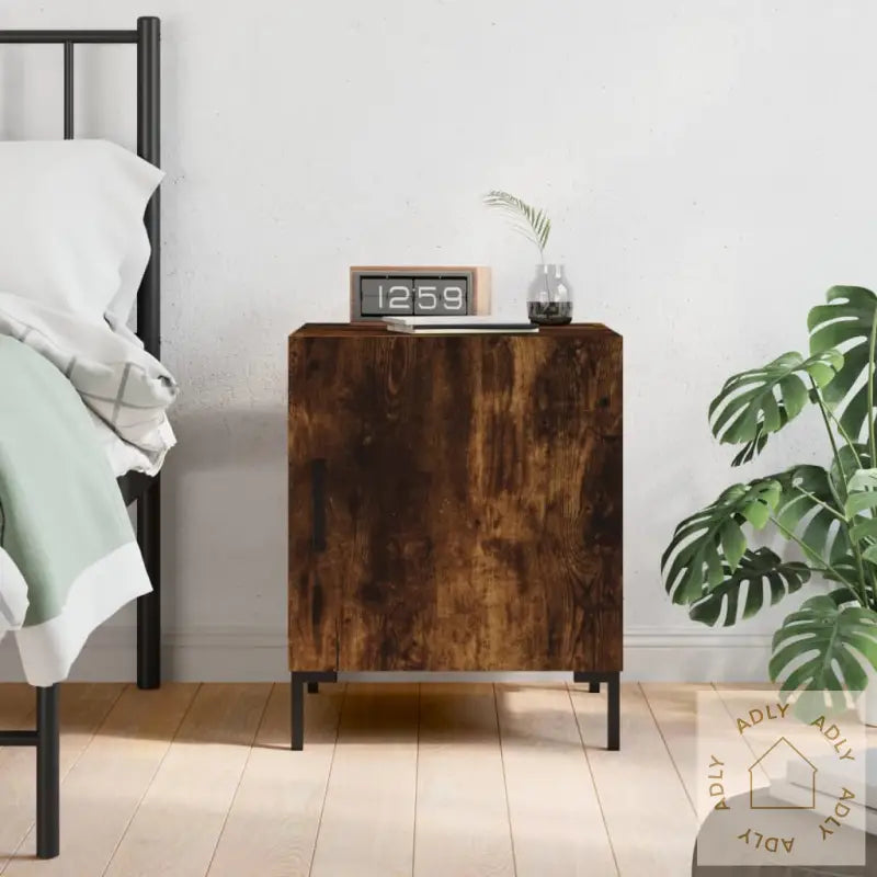 Slitesterkt materiale: Dette nattbordet er laget av konstruert tre, kjent for sin eksepsjonelle kvalitet. Det har en glatt overflate, og materialet gir både styrke, stabilitet og god motstand mot fuktighet – perfekt for møbler til hjemmet som skal vare lenge.Romslig lagringsplass: Nyt et praktisk rom inni nattbordet med romslig lagringsplass, slik at du enkelt kan organisere alt fra bøker og elektroniske dingser til små hverdagslige gjenstander. Hold tingene dine i umiddelbar nærhet, men fortsatt ryddig og lett tilgjengelig – noe som gjør det ideelt for deg som setter pris på funksjonelle møbler.Visningsfunksjon: Bruk toppen av nattbordet til å vise frem favorittbildene dine, små dekorasjoner eller en vase med friske blomster for å skape et hyggelig og personlig preg på rommet.Metallføtter: De stilige metallføttene gir ikke bare ekstra stabilitet til møbelet, men gir også nattbordet et moderne uttrykk som passer inn i mange ulike interiørstiler.Praktisk dør: Beskytt eiendelene dine mot støv og få et ryddigere soverom ved å oppbevare det du bruker mest bak den praktiske døren – praktisk for deg som ser etter smarte løsninger når du velger nye møbler.Advarsel: