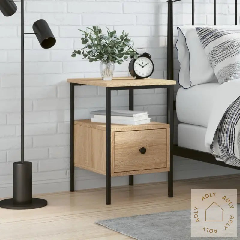 Slitesterkt materiale: Sidebordet er laget av konstruert tre i høy kvalitet som har en jevn overflate og er kjent for sin styrke og motstandskraft mot fuktighet. Dette gjør det til et perfekt valg når du ønsker slitesterke møbler til hjemmet.Stabil ramme: Den solide jernrammen gir nattbordet ekstra stabilitet og sørger for at det tåler daglig bruk over tid.Rikelig med lagringsplass: Du får god plass til å holde orden på telefon, bøker og andre hverdagsting – alt innen rekkevidde når du trenger det mest. Skapet holder ting organisert og ryddig, samtidig som det tar liten plass i rommet.Visningsfunksjon: Toppen av nattbordet egner seg perfekt til å vise frem dekor, bilder eller grønne planter som kan sette et personlig preg på rommet og bidra til en hyggelig atmosfære.Justerbare føtter: Fire justerbare føtter med plastbeskyttere gjør det enkelt å holde nattbordet stabilt selv på ujevne gulv, noe som er praktisk både på parkett og teppegulv. I tillegg beskytter disse beina gulvet mot riper og gir bedre balanse.Advarsel: