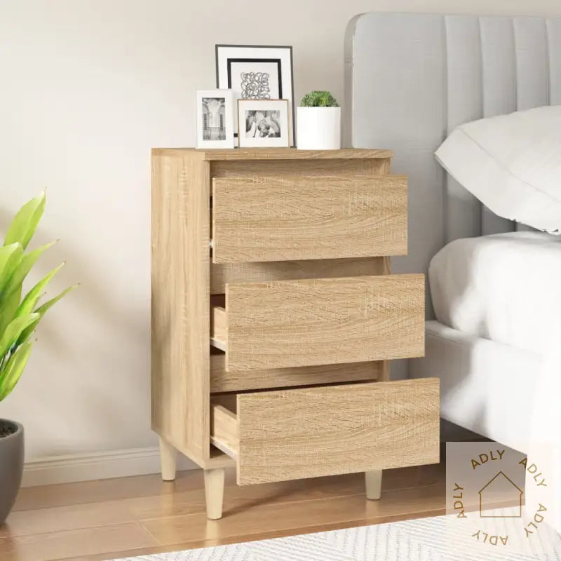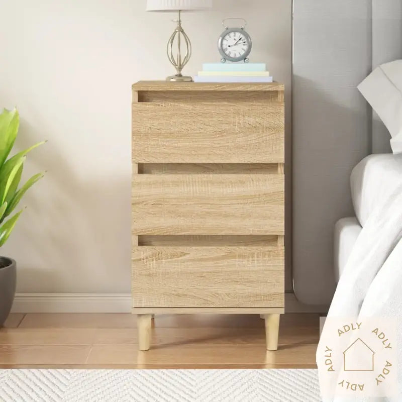 Slitesterkt materiale: Det konstruerte treverket gir nattbordet en solid, stabil følelse, og overflaten er både glatt og enkel å holde ren. Materialet har høy kvalitet, og tåler både daglig bruk og fuktighet, noe som sikrer varig bruk.Rikelig lagringsplass: Med tre romslige skuffer får du god plass til å organisere alt fra bøker, elektronikk og ladere til små personlige eiendeler. Du får enkel tilgang til alt du trenger nær sengen, samtidig som det ser ryddig ut.Fine trebein: Ben laget av heltre eukalyptus gir nattbordet et naturlig og innbydende uttrykk. Disse benene er både stilige og robuste, så de tåler hverdagens bruk og matcher de fleste stiler innen møbler til hjemmet – også hagemøbler eller utendørsmøbler i samme stil.Praktisk topp: Bordplaten er solid og gir god plass til å vise fram favorittdekor, fotorammer eller en grønn plante. Det gir et personlig preg på soverommet ditt.Enkel rengjøring: Sideskapet krever minimalt med vedlikehold; bare tørk av med en fuktig klut for å holde det fint.Advarsel:
