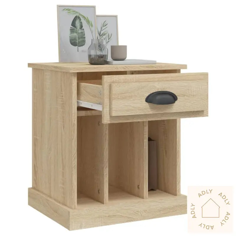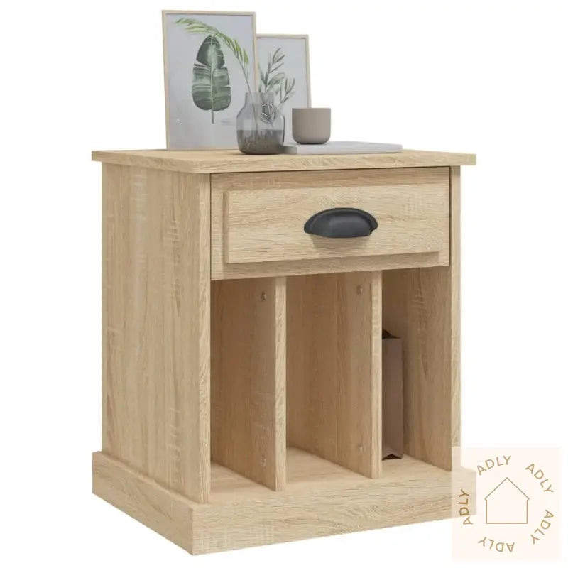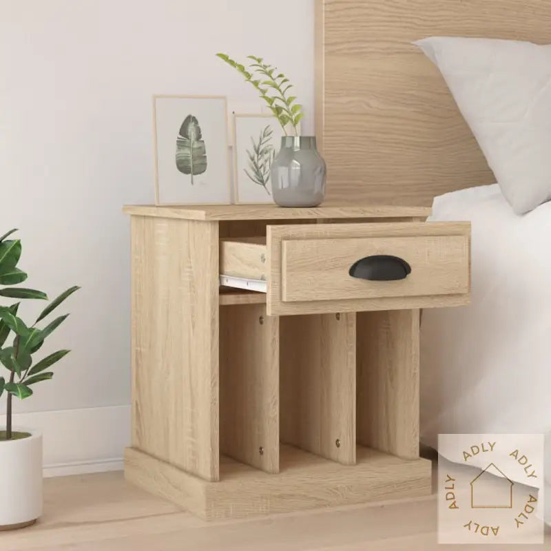 Slitesterkt materiale: Nattbordet er laget av konstruert tre som ikke bare har en jevn og stilig overflate, men også er ekstra robust. Materialet gir høy stabilitet og er motstandsdyktig mot både fukt og slitasje – perfekt for daglig bruk.Smart lagringsplass: Med en praktisk skuff og hele tre åpne rom, kan du enkelt holde orden på alt fra bøker, magasiner og ladeledninger til småting du ønsker å ha innen rekkevidde ved sengen. Nattbordet er også et supert supplement til bokhyller og stående hyller hvis du vil matche møbler og oppbevaringsløsninger.Solid bordplate: Toppen på nattbordet er stødig, noe som gjør den ideell for å vise frem pyntegjenstander, bilder eller en liten potteplante for ekstra kos på soverommet.Godt å vite: