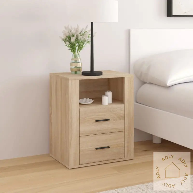 Slitesterkt materiale: Nattbordet er laget av konstruert tre av høy kvalitet. Overflaten er glatt og enkel å holde pen, samtidig som materialet har utmerket styrke, stabilitet og motstand mot fuktighet. Dette gjør det til et slitesterkt valg for enhver innredning – enten du ønsker robuste møbler eller ønsker et komplement til dine andre møbler i sonoma eik.