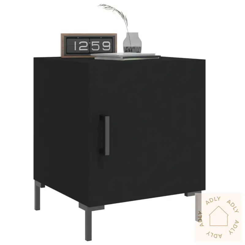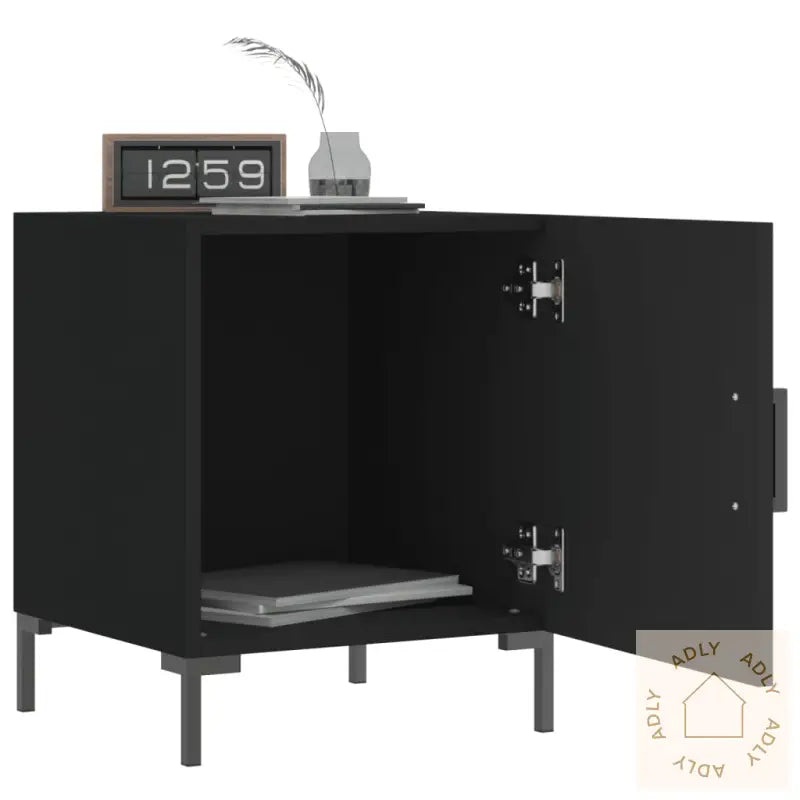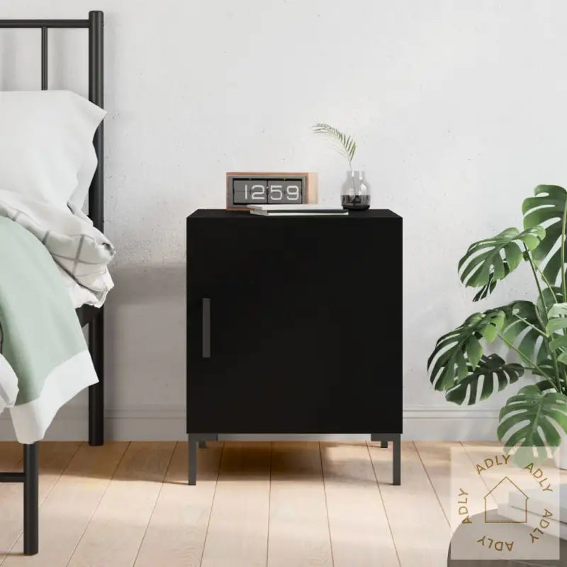 Slitesterkt materiale: Det konstruerte treverket har en glatt overflate av eksepsjonell kvalitet og gir deg både styrke, stabilitet og motstand mot fuktighet, noe som gjør at møbelet tåler daglig bruk.Romslig lagringsplass: Nattbordet har et praktisk rom som gir deg romslig lagringsplass til bøker, multimediautstyr eller andre nødvendige småting, slik at du har alt lett tilgjengelig ved senga.Visningsfunksjon: På toppen av sideskapet får du god plass til å vise frem dine favorittbilder, dekorasjoner eller blomster. Et enkelt grep som gir personlig preg og løfter rommet.Metallføtter: De robuste metallføttene gir ikke bare en kul og rolig stil til ditt interiør, men sørger også for stabilitet og lang levetid på møbelet.Praktisk dør: Med en dør kan du gjemme bort eiendelene dine, så de holder seg fri for støv og skaper et ryddig uttrykk.Advarsel: