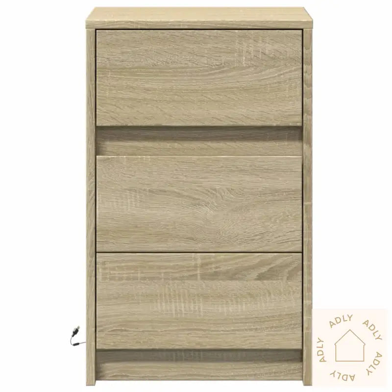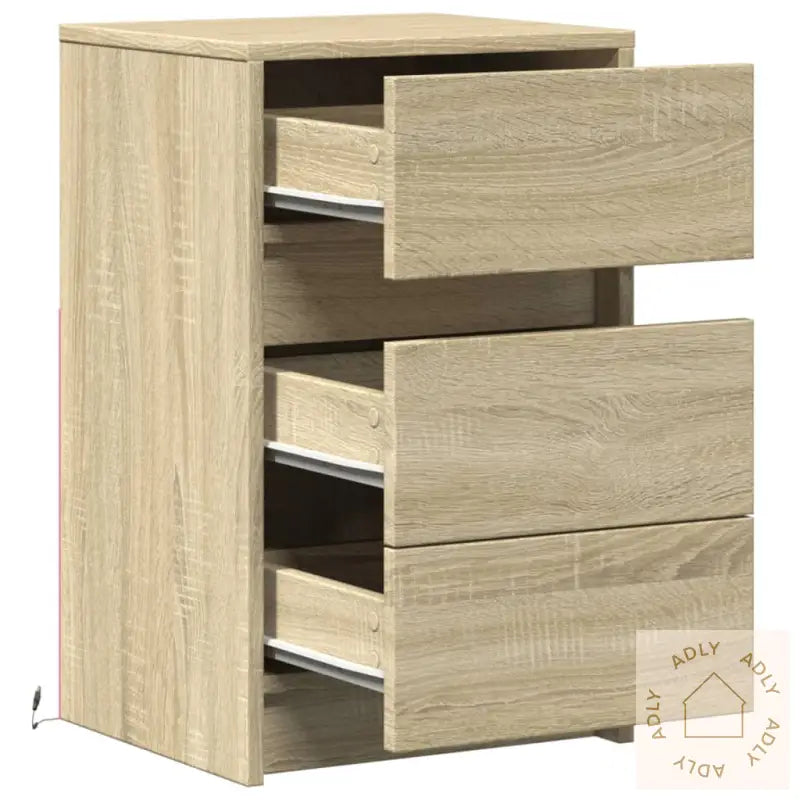 Produktet leveres med USB-kontakt som krever en sertifisert 5V USB-strømkilde (ikke inkludert).Farge: sonoma eikMateriale: konstruert treMål: 38 x 34 x 61 cm (B x D x H)Maksimal lastekapasitet (totalt): 50 kg – dette gir deg muligheten til å ha både lamper, dekor og bøker på nattbordet uten bekymringer.Maksimal lastekapasitet (skuff): 5 kgMaksimal lastekapasitet (topplag): 40 kgMontering kreves: jaLegal Documents: