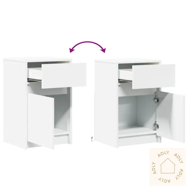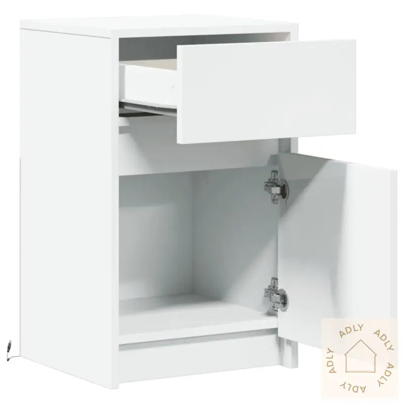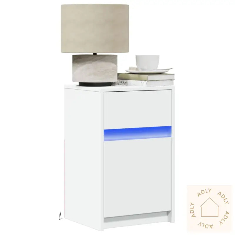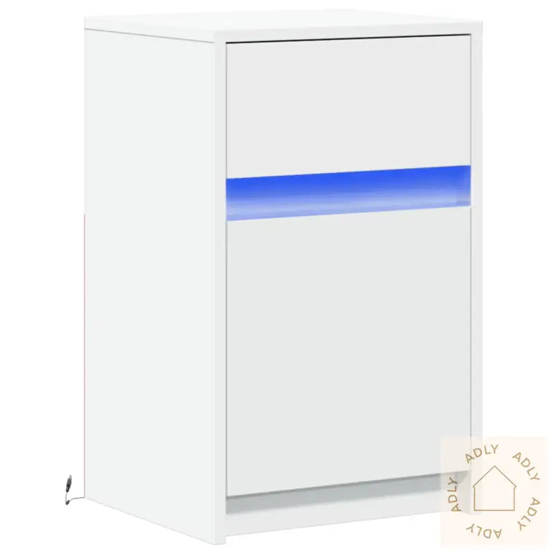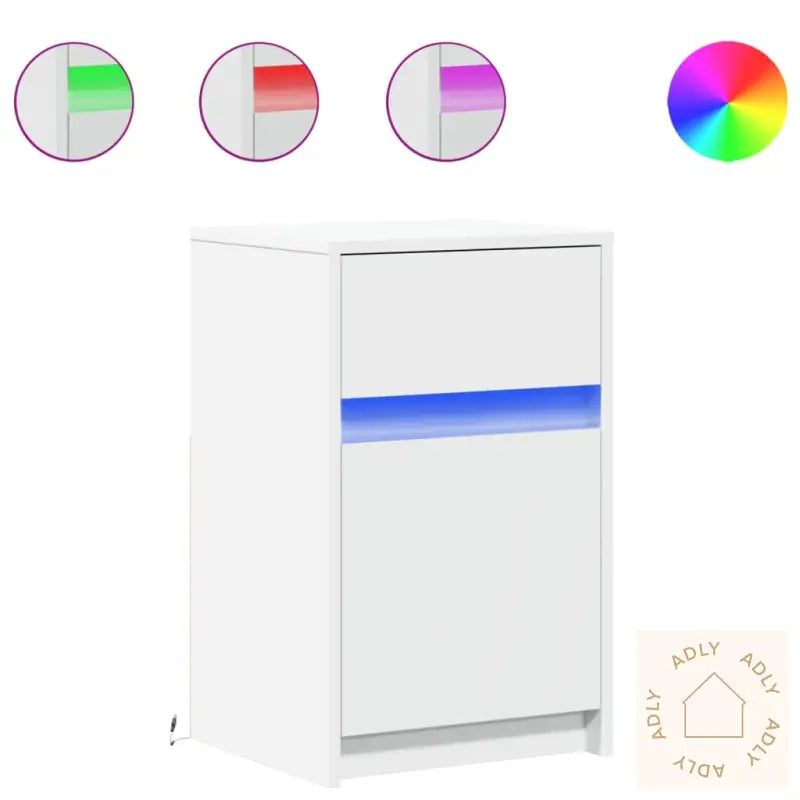 Holdbart materiale: Nattbordet er laget av kvalitetskonstruert tre, noe som gir en glatt overflate samt god styrke og stabilitet. Materialvalget sørger også for lang levetid og motstandsdyktighet mot fukt – perfekt for alle rom der møblene må tåle litt mer.Rikelig med oppbevaringsplass: Smarte rominndelinger gjør at nattbordet tilbyr rikelig med oppbevaringsplass, slik at du enkelt kan holde orden på alt fra bøker til småting under hånden. Oppbevar alt du trenger nært og organisert – samtidig som det bidrar til et ryddig uttrykk.RGB LED-lys for en hyggelig atmosfære: Innebygde RGB LED-lys gir deg muligheten til å justere lysmoduser, farger og lysstyrke, så du skaper din egen stemning i rommet. Dette er en perfekt måte å både fremheve interiøret og gjøre nattbordet til et blikkfang med personlige lyseffekter.Enkelt å vedlikeholde: Takket være den glatte overflaten kan møbelet raskt rengjøres med en fuktig klut. Dette redusere vedlikeholdsbehovet betraktelig og gjør at nattbordet alltid ser pent ut – selv ved daglig bruk.Advarsel: