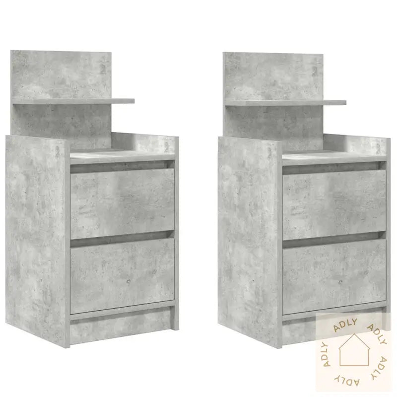 For å forhindre at produktet velter bør du alltid bruke den medfølgende festeanordningen når du monterer nattbordet. Dette gjelder uansett om det står alene, brukes sammen med annet nødvendig interiør eller plasseres sammen med dine eksisterende bokhyller og stående hyller.Farge: betonggrå – en moderne og tidløs nyanse som matcher de fleste hagemøbler og innredningsstiler.Materiale: konstruert treSamlet mål (hver): 38 x 34 x 80 cm (B x D x H), passer lett inn ved siden av sengen eller hvor du ellers måtte trenge praktisk lagringsplass.Antall skuffer: 2Total vektkapasitet (stk): 60 kgVektkapasitet per skuff: 5 kgMontering kreves: ja, men alt du trenger følger selvfølgelig med.Leveransen inneholder:2 x nattbord – topp kvalitet og perfekt for deg som vil matche flere møbler til hjemmet.