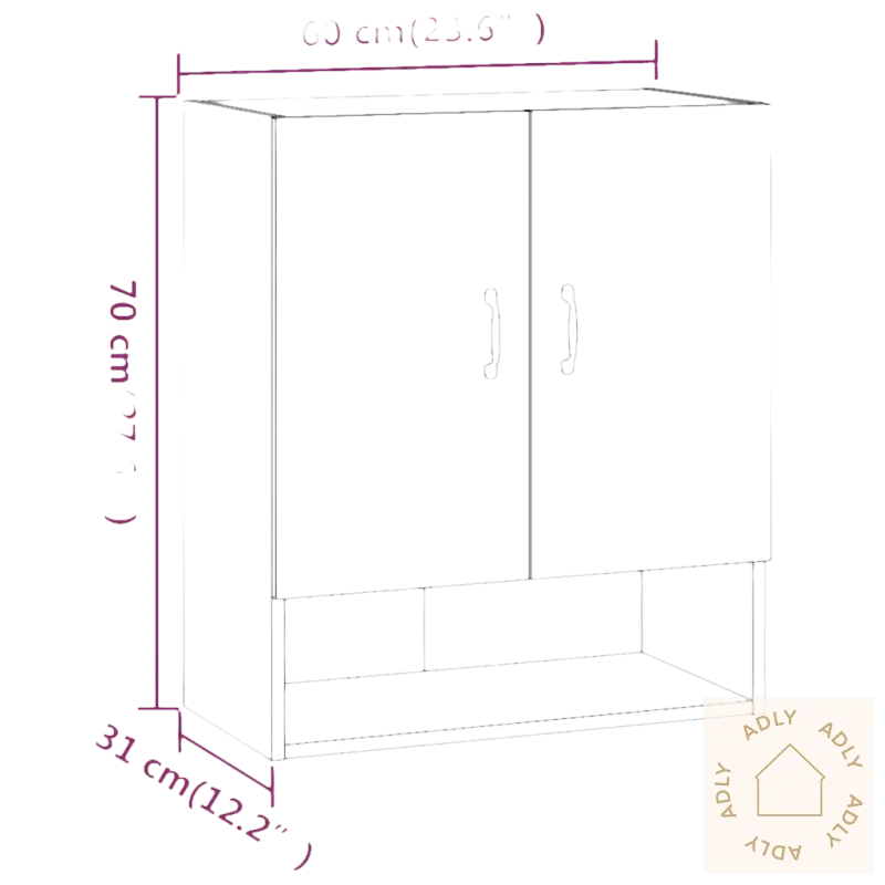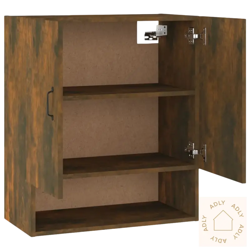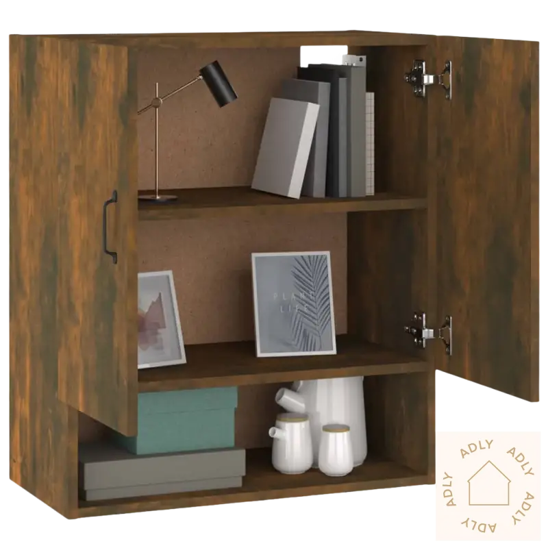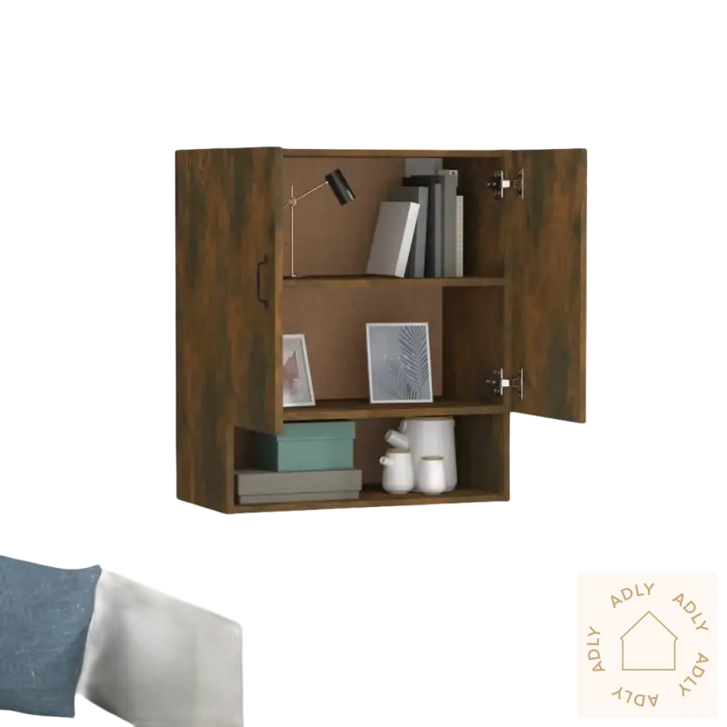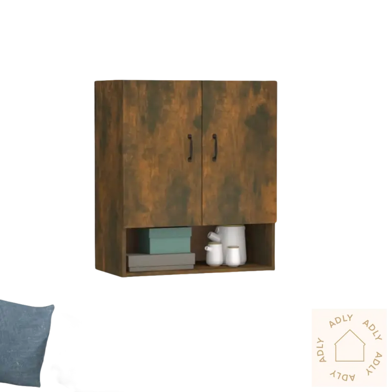 Solid materiale: Skapet er laget av konstruert treverk av eksepsjonell kvalitet. Overflaten er glatt, og materialet gir god styrke og stabilitet. Det tåler fuktighet bedre enn vanlig tre, noe som gjør det til et slitesterkt alternativ for langvarig bruk innendørs.Rikelig med lagringsplass: Med 2 dører og 1 åpen hylle får du god plass til organisering. Perfekt til alt fra mediespillere, dekor, magasiner og annet tilbehør. Du får oversikt, ryddighet og enkel tilgang til tingene dine.Veggmontert funksjon: Skapet monteres enkelt på veggen, slik at du sparer verdifull gulvplass. Praktisk løsning når du ønsker å utnytte plassen maksimalt – spesielt i mindre rom eller der du vil ha mer plass til andre hagemøbler eller møbler.Stilig design: Med sitt enkle og moderne uttrykk passer dette veggmonterte skapet naturlig inn med de fleste stiler. Uansett om du har klassiske eller moderne møbler, vil det gi rommet et løft og tilføre en følelse av eleganse som frisker opp helheten i interiøret.Merk: