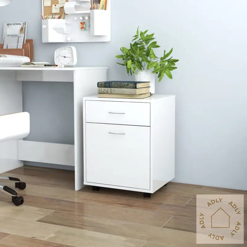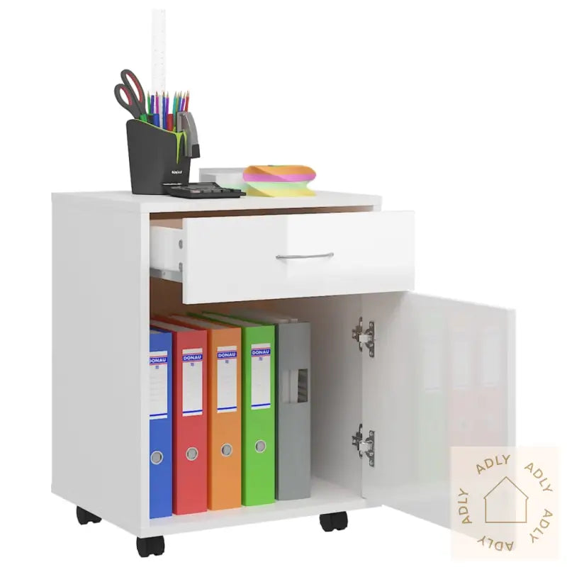 Skapet leveres med én dør og en praktisk skuff, slik at du enkelt kan holde orden på filer og småting som trenger litt ekstra beskyttelse. Du får både sikker oppbevaring og en ryddig løsning i ett og samme produkt. Det er laget av robust konstruert tre av høy kvalitet, så det tåler daglig bruk og er samtidig enkelt å rengjøre. Med fire hjul, hvorav to kan låses, er rulleskapet enkelt å flytte rundt etter behov. Derfor fungerer det like bra som mobil oppbevaringsløsning på kontoret eller som fleksibelt tilskudd til dine øvrige møbler til hjemmet.