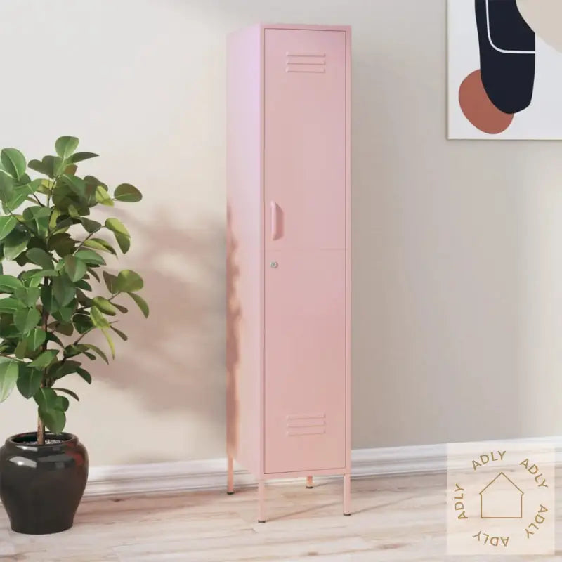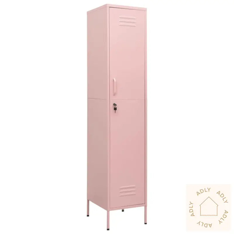 De fire justerbare hyller gir deg fleksibilitet til å lagre klær, sko, vesker, bøker, filer eller andre eiendeler akkurat slik du vi ha det. Skapet har også en praktisk lås under håndtaket for trygg oppbevaring av verdigjenstander. Lufteventilene på dørene sørger for god luftsirkulasjon, så innholdet holder seg friskt og tørt – perfekt for både klær og andre ting. Den rosa fargen gir skapet et sprekt uttrykk og tilfører interiøret personlighet. Oppbevaringsskapet passer godt sammen med alt fra klassiske hyller til moderne hagemøbler, og er derfor et godt valg for deg som ønsker allsidige møbler til hjemmet.