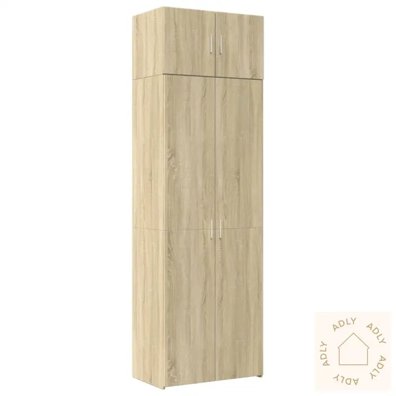 Stabilt og slitesterkt materiale: Skapet er laget av konstruert tre, som er kjent for sin styrke og jevne finish. Materialet tåler fukt, motvirker vridning og sprekker ikke, så du får et skap som holder seg fint lenge. Perfekt for deg som vil investere i robuste møbler til hjemmet.Rikelig med oppbevaringsplass: Med seks rom fordelt mellom et lite og et stort skap får du fleksibel plass til alt fra bøker og dekorasjoner til kjøkkenutstyr, elektronikk eller annet du ønsker å gjemme unna – eller vise frem. Møbeldesignen gjør det enkelt å holde orden og gir deg oversikt over tingene dine.Plassbesparende: Takket være det høye designet og de smarte oppbevaringsløsningene får du maks ut av hver kvadratmeter. Dette gjør skapet særlig egnet for mindre rom eller steder der plass er en utfordring. Skapet gir masse lagring uten å ta opp unødvendig gulvplass.Flere bruksområder: Skapet passer til mer enn bare én type rom – bruk det på badet, på kjøkkenet, i stuen, gangen, arbeidsrommet, garasjen eller hvor du måtte trenge ekstra oppbevaring. Allsidigheten gir deg frihet til å innrede akkurat slik du ønsker med møbler som matcher din stil, som dette sonoma eik-skapet.Advarsel: