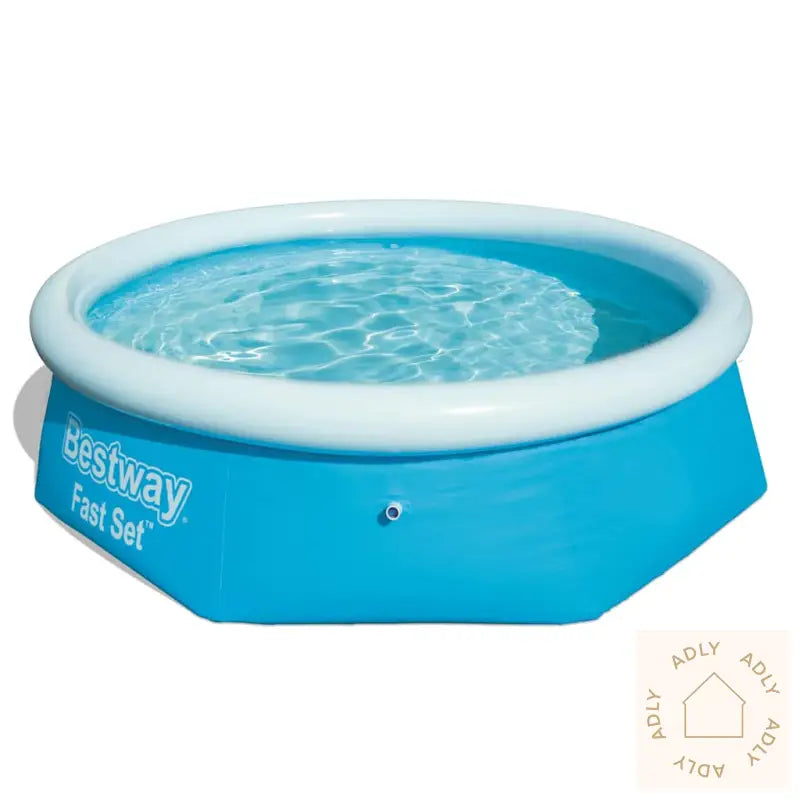 Det stilige svømmebassenget har forsterkede vegger laget av Tritech – et ekstra robust 3-lags materiale som består av laminert PVC og polyesternett. Resultatet er en solid konstruksjon som tåler både lek og mye bruk. Oppsettet er enkelt og raskt: Bare legg bassenget på en jevn overflate, blås opp toppringen og fyll det med vann, så er dere klare til bademoro.