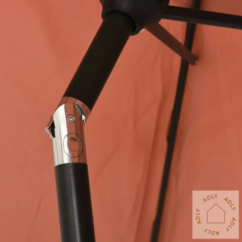 Farger: terrakotta og mørkegråMaterialer: stoff (100% polyester), aluminium med pulverlakkMål: 200 x 224 cm (Diameter x H)VippbarMontering kreves: ja