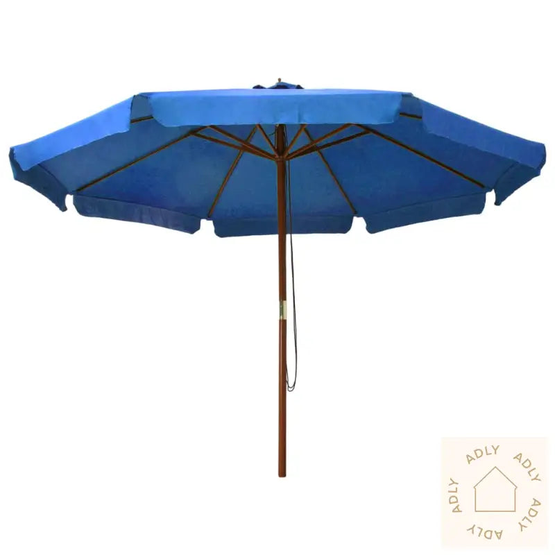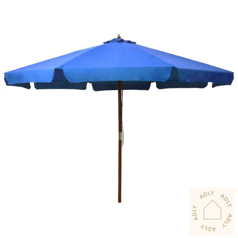 Denne parasollen er superenkel å montere og gir et stilrent, asurblått blikkfang på terrassen eller i hagen—en flott kombinasjon til bokhyller og stående hyller hvis du ønsker helhetlige utemøbler som matcher ditt personlige uttrykk. For maksimal holdbarhet anbefaler vi å bruke impregneringsspray hvis du planlegger å ha parasollen ute i kraftig regn.
