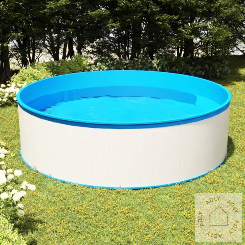 Farger: hvit og blåMaterialer: stål og PVCMål: 350 x 90 cm (Diameter x H)Tykkelse stålvegg: 0,3 mmTykkelse PVC-foring: 0,3 mmKapasitet: 7200 L (1900 gal) – Romslig plass til hele familienLett å sette opp og ta ned, perfekt for deg som ønsker fleksible løsninger til uterommetMontering kreves: ja