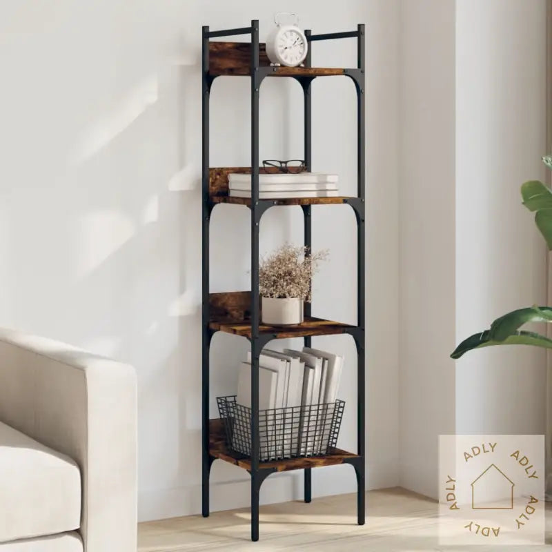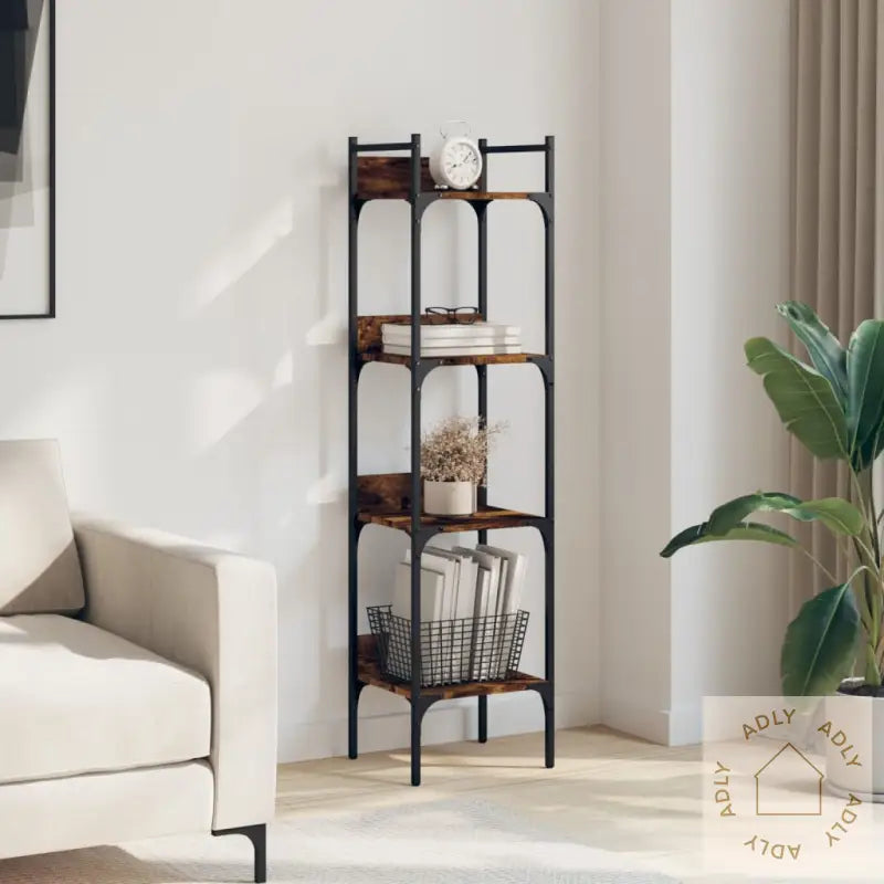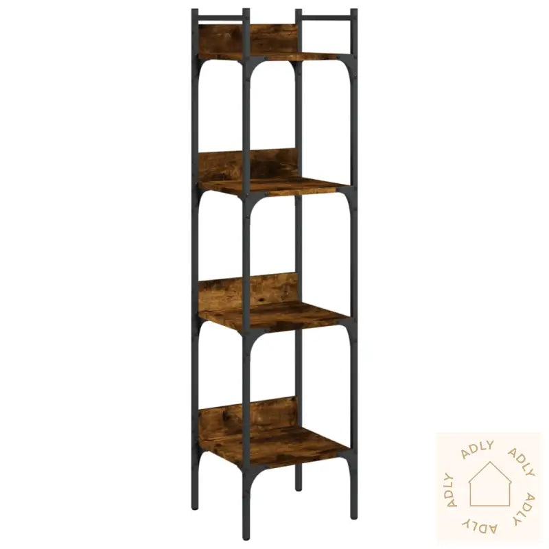 For sikker bruk må produktet festes til veggen med den medfølgende festeanordningen for å hindre at det velter.Farge: røkt eikMaterialer: konstruert tre, pulverlakkert stålMål: 35 x 30 x 138,5 cm (L x B x H)Maksimal lastekapasitet (per etasje): 35 kgMed 4 etasjerMontering kreves: jaLegal Documents:
