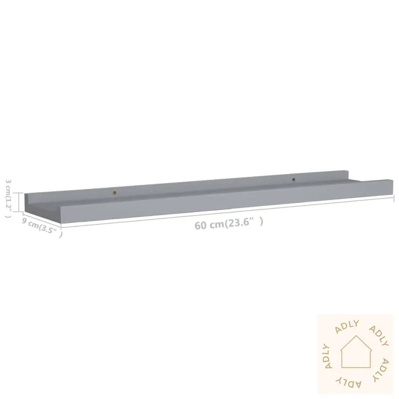 Farge: gråMateriale: MDFMål: 60 x 9 x 3 cm (L x B x H)U-formet designFrontkant følger medLeveransen inneholder:2 x vegghyller