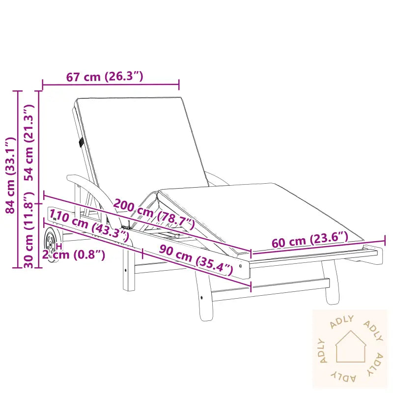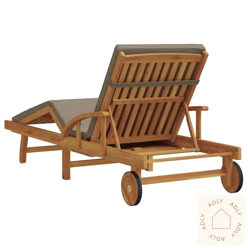Justerbare armlener lar deg enkelt finne en optimal loungeposisjon – uansett om du ønsker maksimal støtte når du leser, eller bare vil lene deg godt tilbake for å slappe av.Det sammenleggbare designet gjør den ideell til mindre uteplasser, enkel å sette bort når den ikke er i bruk, eller praktisk å ta med seg ut i hagen eller på terrassen.Den tilbakelente ryggstøtten gir deg friheten til å justere vinkelen slik at du finner akkurat den posisjonen som passer best – enten du skal sole deg eller ta en middagslur ute.Solsengen er laget i solid teaktre, kjent for sin robuste holdbarhet og naturlige motstandskraft mot vær og vind. Dette gir hagemøblene et langvarig og tidløst preg, og du får et møbel som holder seg flott år etter år.Med fokus på komfort og brukervennlighet er solsengen romslig og designet for én person – perfekt når du skal finne roen i uteområdet ditt og virkelig kunne nyte kvalitetstid utendørs.Farge: TaupeForm: RektangulærMateriale: Solid teaktreOverflate: Oljet for ekstra beskyttelse og et eksklusivt utseendeInnendørs/Ute: Kun til utendørs brukDeksel inkludert: NeiRom: Hage og terrasseKapasitet: 1 personMaksimal vekt: 150 kgHøyde på overflaten: 5 cmHøyde på bena: 25 cmDiameter på hjul: 15 cmDybde på sete: 180 cmSetekapasitet: 1Gynger: NeiLeveranse inneholder: 1 solsengMontering nødvendig: JaAnbefalt antall personer for montering: 2
