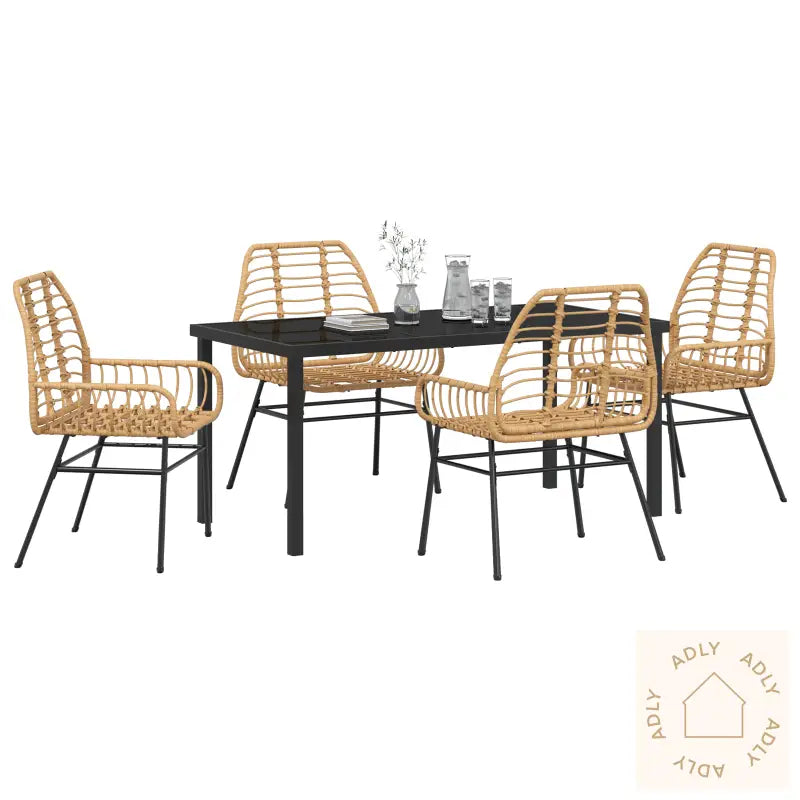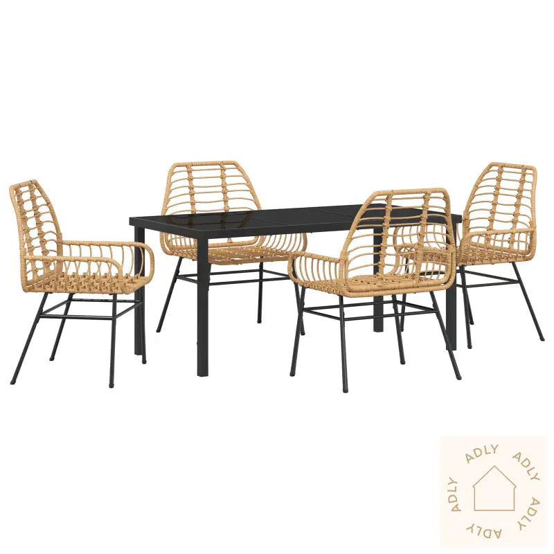 Enkel vedlikehold: Det syntetiske poly rattan-materialet gjør rengjøring til en lek – bare tørk over med en fuktig klut, så holder møblene seg fine år etter år.Antall deler: 5Farge: BrunForm: RektangulærMateriale: Syntetisk poly rattanFinish: PulverlakkertBruksområde: Kun utendørsInkluderer overtrekk: NeiRom: Hagen eller terrassenBatterier inkludert: NeiHodegjerde inkludert: NeiMaks belastning per stol: 110 kgMaks antall personer: 4Benhøyde: 44 cmSetedybde: 48 cmSittekapasitet: 1 per stolLekefunksjoner: NeiLevering inneholder: 4 x stoler, 1 x bordMontering: Ja, to personer anbefales
