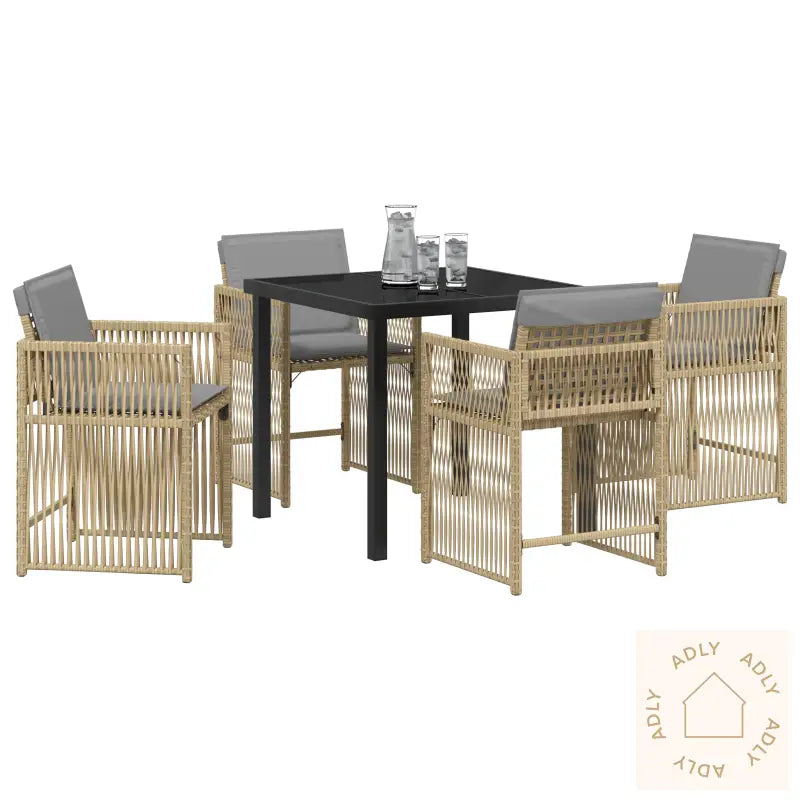 Hagesettet er laget av slitesterk poly rattan (PE rotting) i en delikat mix beige-farge – dette gir en lys og naturlig utendørslook som minner om ekte rotting, men tåler langt mer vær og daglig bruk. Poly rattan er veldig lettstelt: bare tørk over med en fuktig klut ved behov, så har du alltid et pent spiseområde klar.De tykke putene i lysegrått stoff sørger for ekstra god sittekomfort enten du spiser middag eller bare slapper av en lang sommerkveld. Stoffet føles mykt mot huden, noe som gjør disse hagemøblene perfekte til å trekke ut tiden ute.Stolenes ryggstøtte kan enkelt foldes ned, så grupen krever minimalt med plass når du vil rydde bort eller lagre stoler utenom sesongen – ideelt hvis du har liten plass på terrassen eller balkongen.Pulverlakkert stålramme gir ekstra stabilitet og sørger for at både bord og stoler holder seg solide over tid, selv med norsk vær og hyppig bruk ute.Med både design og praktiskhet i fokus er dette poly rattan settet en super match for deg som vil ha hagemøbler som passer på terrasser, balkonger eller i hagen. Du kan trygt invitere til måltider og samvær, og vite at disse robuste møblene tåler litt liv og røre.Antall varer: 5Farge: BeigeForm: RektangulærMateriale: Syntetisk Poly RattanFinish: PulverlakkertInnendørs/Ute: Kun utendørsTrekk inkludert: NeiRom: Garten und TerrassegBatterier inkludert: NeiHodegjerde inkludert: NeiMaksimalt antall personer: 4Maksimal vekt: 110 kgBenhøyde: 50 cmSittedybde: 38 cmSittekapasitet: 4Gynger: NeiStige: NeiMerke: Leveransen inneholder: 4 x Hagestol, 1 x BordMontering nødvendig: JaAnbefalt antall personer for montering: 2