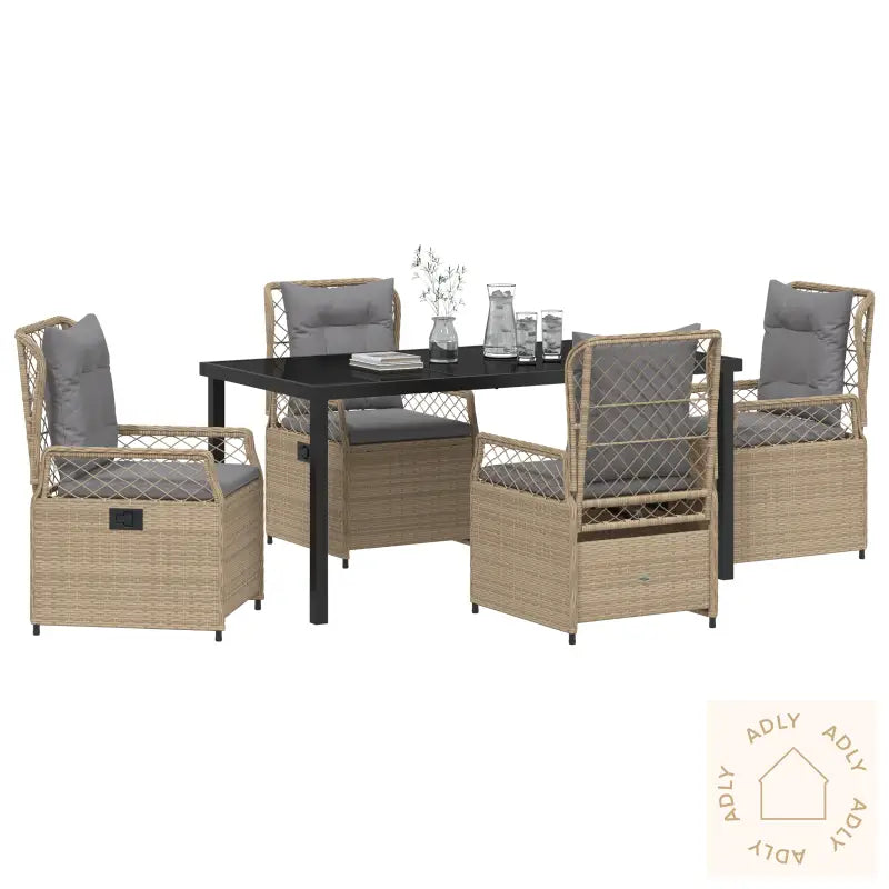 Den robuste, værbestandige PE-rotangen ser ut som naturlig rotting, men krever minimalt med vedlikehold, så stolene holder seg pene selv med jevnlig bruk ute.Ryggstøtten kan enkelt justeres med et smidig håndtak, slik at du raskt finner den ideelle stillingen for å slappe av eller nyte solen.De polstrede putene gir ekstra god sittekomfort, noe som gjør settene perfekte både til rolige dager alene og til å ta imot gjester.Avtakbare putetrekk gjør rengjøringen enkel og effektiv, så du alltid kan holde utemøblene rene uten mye slit.Rammekonstruksjonen i pulverlakkert stål sørger for at stolene står stødig og tåler daglig bruk ute i hagen, samtidig som de holder den elegante stilen sin over tid.Antall varer: 5Farge: BeigeForm: RektangulærMateriale: Syntetisk poly rattanOverflate: PulverlakkertInnendørs/Ute: Innendørs / UtendørsTrekk inkludert: NeiRom: VinterhageBatterier inkludert: NeiHodegavl inkludert: NeiMaksimalt antall personer: 4Maksimal vekt: 242,5 kgMin-Max dimensjoner: 55 x 60 x 93Overflater høyde: 2,5 cmBen høyde: 42,0 cmSitte dybde: 60 cmAntall sitteplasser: 4Gynger: NeiStige: NeiLeveransen inneholder: 4 x hagestol, 1 x bordMontering nødvendig: JaAnbefalt antall personer for montering: 2