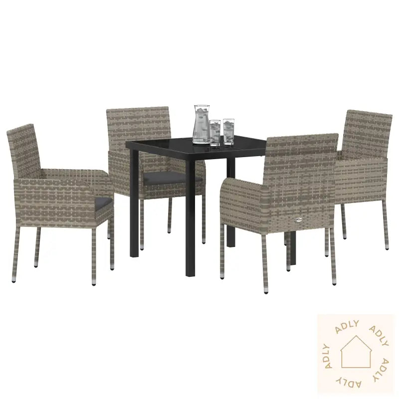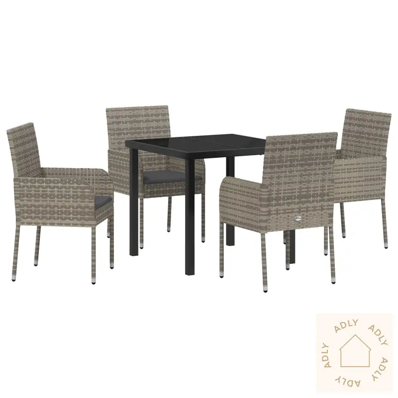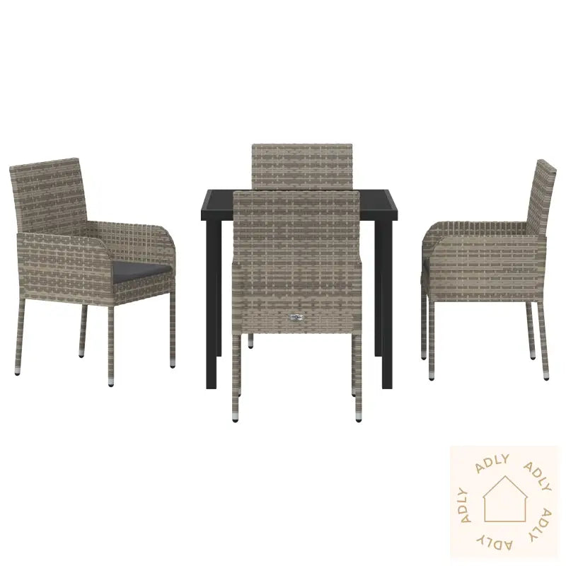 Antall varer: 5Farge: GråForm: RektangulærMateriale: Syntetisk poly rottingOverflate: PulverlakkertInnendørs/Ute: Innendørs / UtendørsTrekk inkludert: NeiRom: Garten und TerrassegBatteri inkludert: NeiHodegavl inkludert: NeiKapacitet: 4Maksimalt antall personer: 4Maksimal vekt: 120 kgMontering inkludert: NeiBenhøyde: 43 cmSitte dybde: 45 cmSitte kapasitet: 1Gynger: NeiTrapp: NeiMerke: Leveransen inneholder: 4 x stol, 1 x bordMontering kreves: JaAnbefalt antall personer for montering: 1