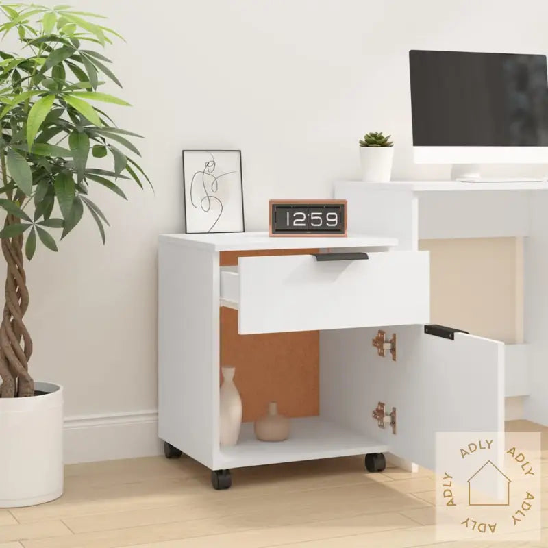 Farge: HvitMateriale: Konstruert treMål: 45 x 38 x 54 cm (B x D x H)Med fire hjulDette tidløse oppbevaringsskapet passer både som del av kontormøbler, eller som funksjonelt supplement til andre møbler og utendørsmøbler hjemme. Perfekt for deg som vil kombinere stil, orden og fleksibilitet i hverdagen!