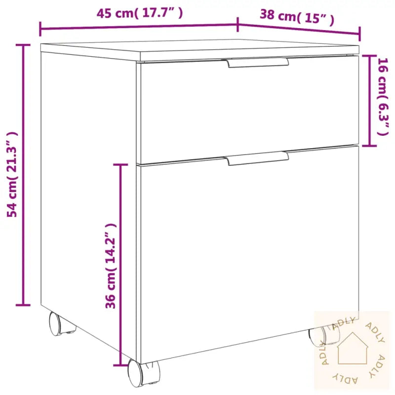 Praktisk materiale: Med konstruert tre får du et slitesterkt og elegant skrivebordsskap med jevn overflate. Materialet kjennetegnes av høy kvalitet, styrke og stabilitet, samtidig som det tåler fukt – noe som gjør skapet til et trygt valg blant møbler til hjemmet.Rikelig med oppbevaringsplass: Arkivskapet gir deg flere romslige skuffer slik at du kan holde tingene dine organisert og lett tilgjengelige, enten det er viktige papirer eller hverdagslige småsaker.Displayfunksjon: Den solide topplaten fungerer perfekt som en stilren utstillingsflate for favorittbøkene dine, dekor eller kaffekoppen, og gjør dette kontorskapet til en dekorativ del av innredningen.Enkel å flytte: De fire svingbare hjulene gjør at skapet enkelt kan trilles til ønsket plassering. To av hjulene kan låses, så du slipper at møbelet glir avgårde, og får stabilitet akkurat der du trenger det.Hvert produkt leveres med en brukervennlig monteringsveiledning, slik at du enkelt kan sette sammen skapet selv uten stress.