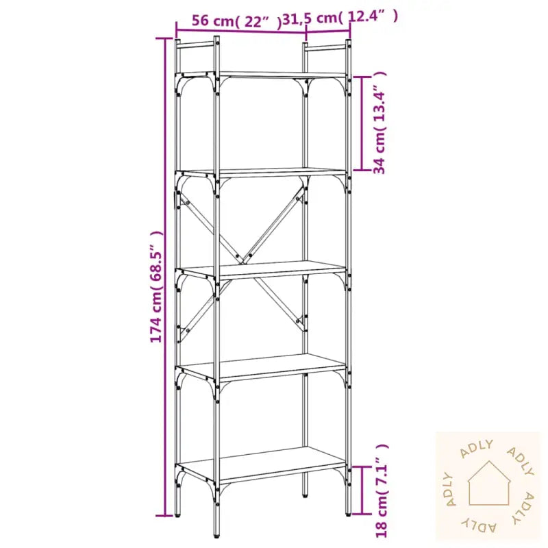 Slitesterkt materiale: Bokhyllen er laget av konstruert treverk av høy kvalitet som har en glatt overflate og tåler daglig bruk. Materialet er sterkt, stabilt og motstandsdyktig mot fuktighet, noe som gir langvarig holdbarhet.Rikelig oppbevaringsplass: Hyllene gir god plass til både bøker, pyntegjenstander og andre småting. Alt holder seg organisert og lett tilgjengelig, samtidig som bokhyllen blir et stilig blikkfang i rommet.Metallramme: Den robuste metallrammen gir bokhyllen en moderne industriell stil, og sørger for soliditet og stabilitet. Dette gjør også at møbelet står trygt selv når det fylles opp med mange bøker eller dekorasjoner.Enkel rengjøring: Bokhyllen kan enkelt tørkes av med en fuktig klut, så den holder seg pen uten mye vedlikehold. Perfekt for deg som ønsker praktiske møbler til hjemmet.Advarsel: