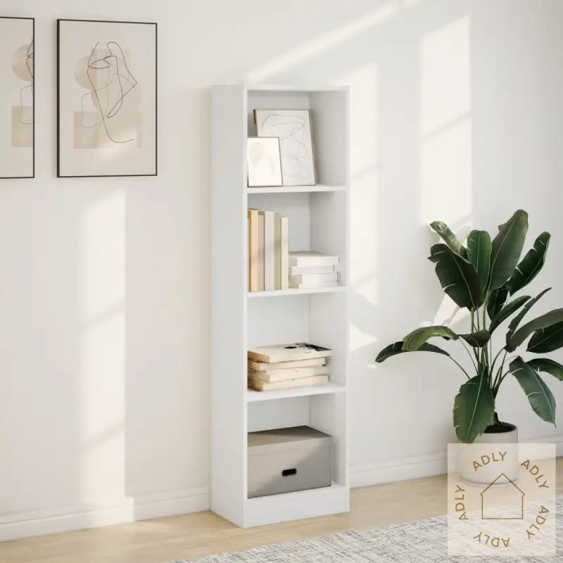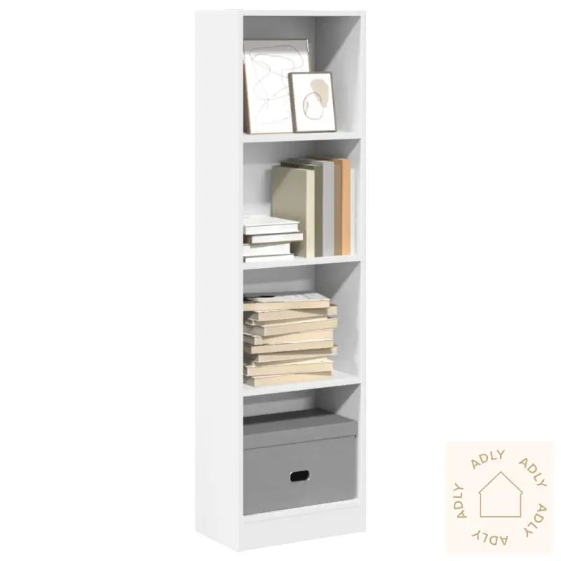 Holdbart materiale: Bokhyllen er laget av konstruert tre med førsteklasses kvalitet. Dette gir deg et møbel som ikke bare ser elegant ut med sin glatte overflate, men som også er robust, stabilt, og motstandsdyktig mot fukt.