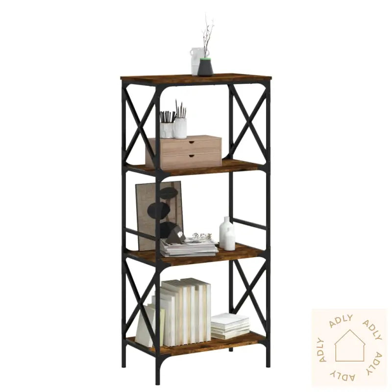 For å forhindre at bokhyllen velter må den festes til veggen med den medfølgende festeanordningen.Farge: røkt eikMaterialer: konstruert tre, metallMål: 59 x 35 x 132 cm (L x B x H)Montering kreves: jaLegal Documents: