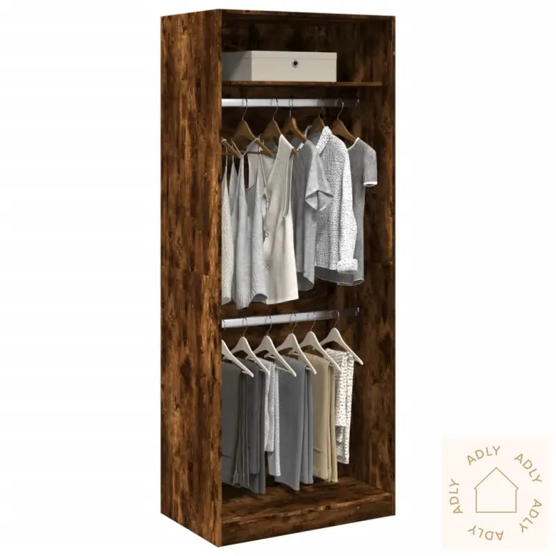 For ekstra sikkerhet bør garderoben sikres mot velting ved å bruke festeanordningen som følger med produktet.Farge: røkt eikMateriale: konstruert treMål: 80 x 50 x 200 cm (B x D x H)Montering kreves: ja