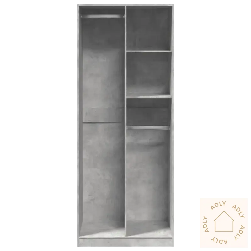 For å unngå at skapet velter, må det sikres med den medfølgende festeanordningen.Farge: Betonggrå – moderne og allsidig farge, fin sammen med mange forskjellige typer møbler og utendørsmøbler.Materiale: Konstruert treMål: 80 x 50 x 200 cm (B x D x H)Enkel montering: Krever enkel montering før bruk.