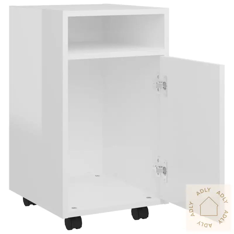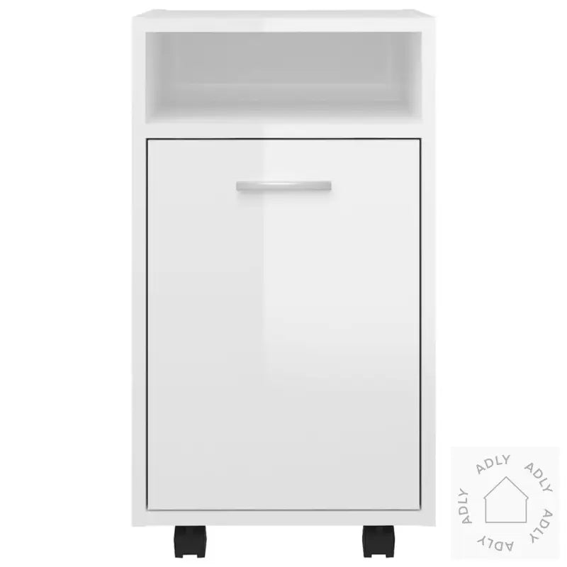 Dette stilige skapet i høyglans hvit har både en hylle og et rom som gir rikelig med lagringsplass. Her kan du enkelt holde det viktigste samlet, enten det er bøker, interiørdetaljer eller ting du vil ha lett tilgjengelig. I tillegg får du en solid overflate på toppen der du kan sette fra deg koppen, legge en bok eller vise fram favorittpyntegjenstandene dine.