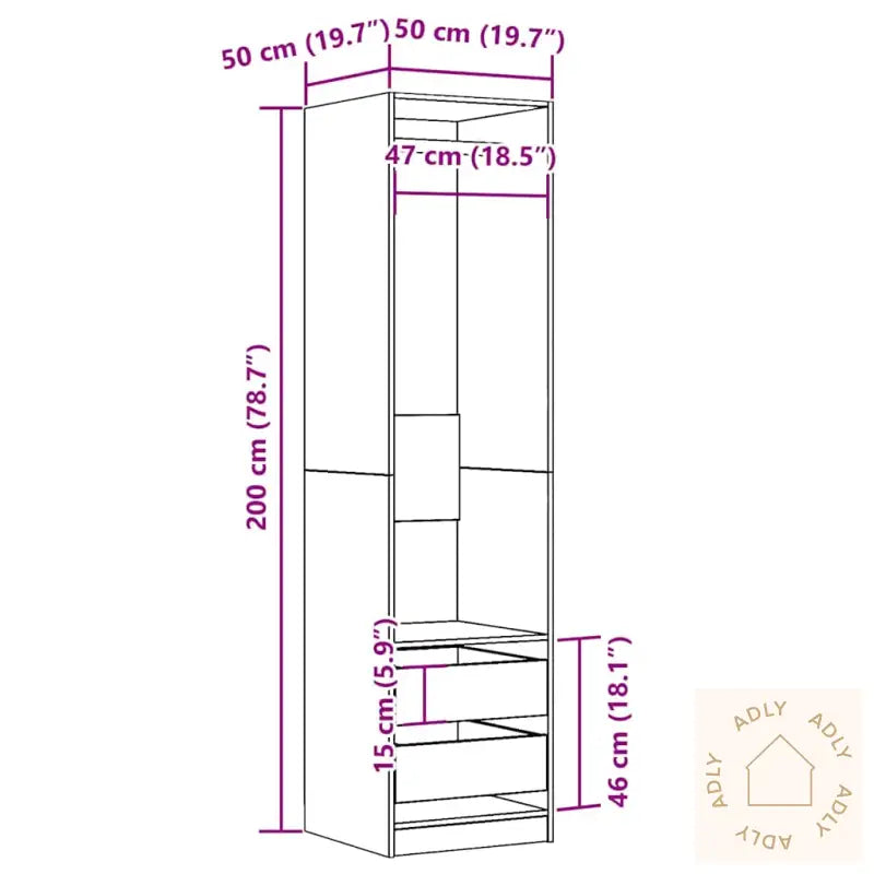 Solid og holdbart materiale: Garderobeskapet er laget av konstruert tre av eksepsjonell kvalitet. Dette gir ikke bare en jevn og elegant overflate, men sørger også for at skapet har god styrke, stabilitet og tåler fukt. Med et slitesterkt materiale får du et møbel som varer lenge og tåler daglig bruk.