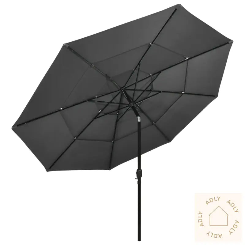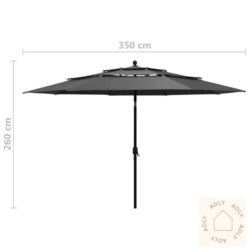 Denne hageparasollen med 3 nivåer er det perfekte valget for å beskytte deg effektivt mot både skadelige UV-stråler og fuktighet, enten du slapper av på terrassen, uteplassen eller i hagen sammen med dine hagemøbler. Det unike designet med flere nivåer sørger for økt luftsirkulasjon under parasollen og reduserer varmeopphopning, noe som gir et ekstra komfortabelt utemiljø.
