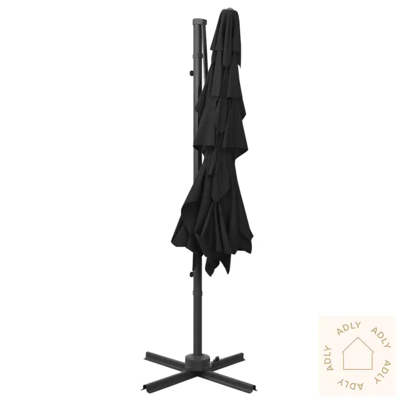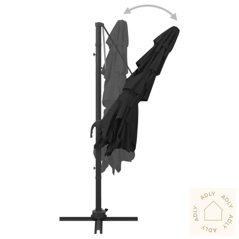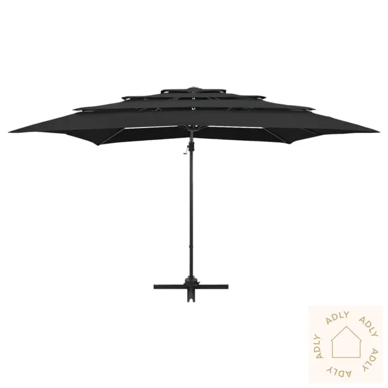 Denne hageparasollen med fire nivåer er det perfekte valget for å skjerme deg mot skadelige UV-stråler og beskytte mot lett regn eller fuktighet, enten du slapper av på terrassen, uteplassen eller i hagen sammen med dine andre hagemøbler. Stoffet i parasollen er laget av slitesterk polyester som både gir god UV-beskyttelse og holder fargen lenge, selv etter mange sesonger utendørs. Den pulverlakkerte aluminiumsstangen og de robuste aluminiums-spilene gir styrke og stødighet i all slags vær, slik at parasollen kan stå trygt blant dine møbler gjennom hele sommeren.
